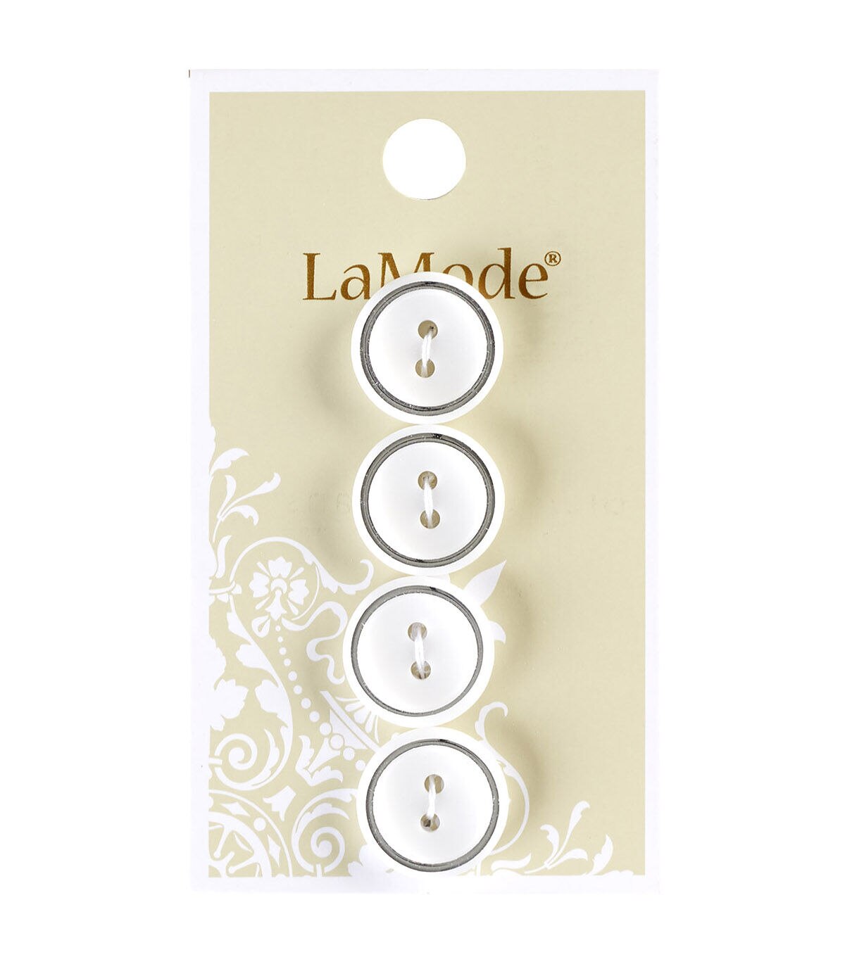 La Mode 4pk 5/8" White with Silver Rim 2-Hole Buttons