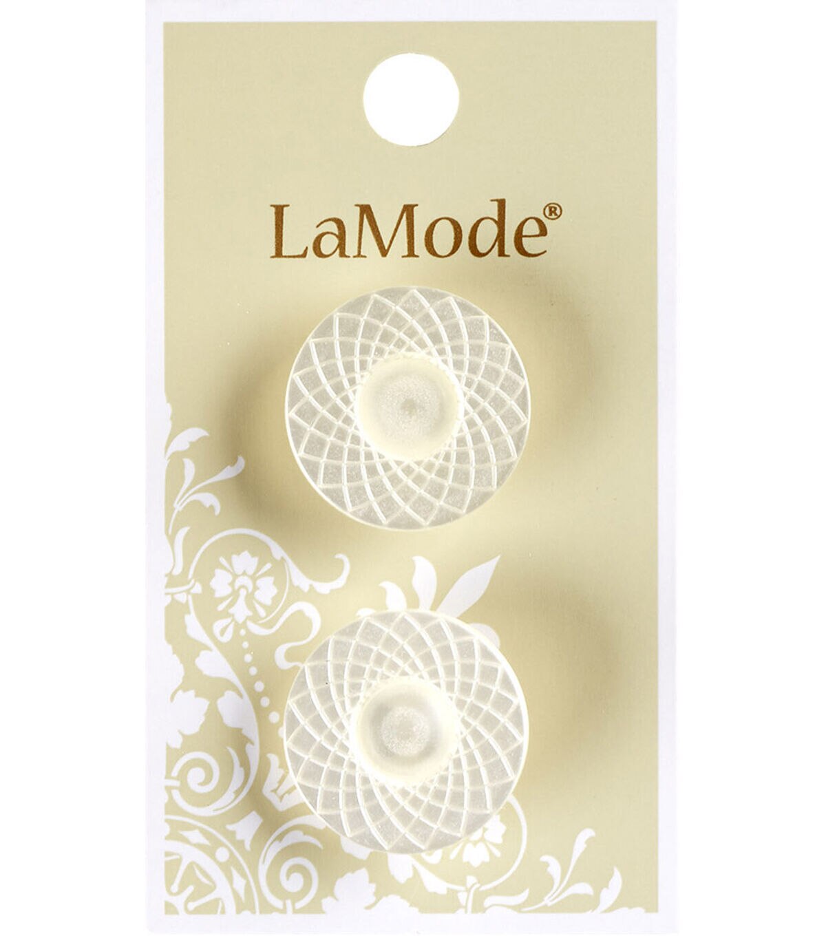 Adorn your traditional shirts, dresses and more with the La Mode Buttons-White Spiralgraph. These buttons have a lovely spiral graph pattern that will lend a dramatic look to your attire. You can also use them to add flair to your art and craft projects. This pack comes with two buttons.