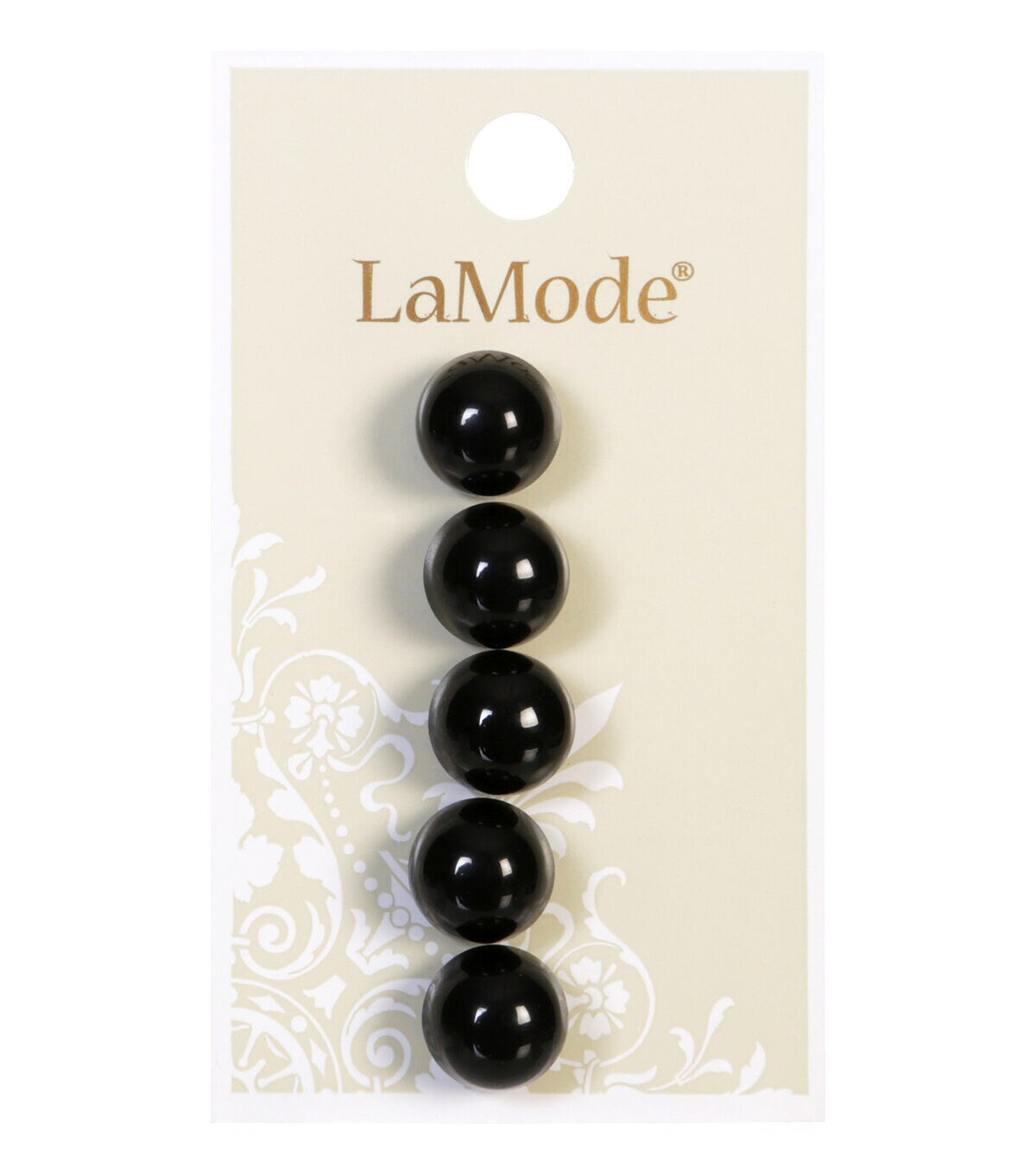 Glamourize your handmade tops with the LaMode Shank Buttons - Black. This pack includes five shank buttons sporting a lovely black shade. You can also use them to decorate handbags, aprons, shirts, jackets and more. Team them with other colorful buttons, sold separately, for added visual charm.Brand: La Mode Collection: Apparel Buttons Includes five buttons Size: 0.44 inch Care: Washable & dry cleanable