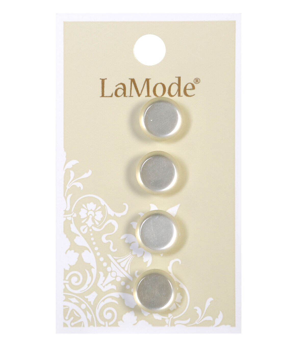 The La Mode Buttons - White will add an elegant touch to your handmade creations. These lovely shank buttons sport a white shade and you can use them on a wide range of apparel including jackets, turncoats, shirts, dresses and more. Team them with other colorful buttons for added charm. This pack comes with four buttons.