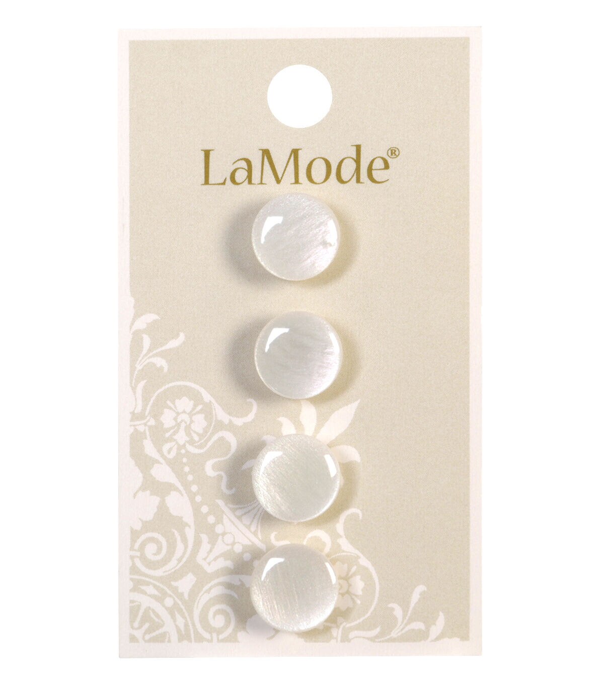 The La Mode Shank Buttons - White are what you need to give a decorative touch to your handmade creations. These round shank buttons sport a lovely white shade with a glossy finish. Add them to sweaters, skirts, jackets, shirts and more for fastening. You can also use them as great replacement buttons.