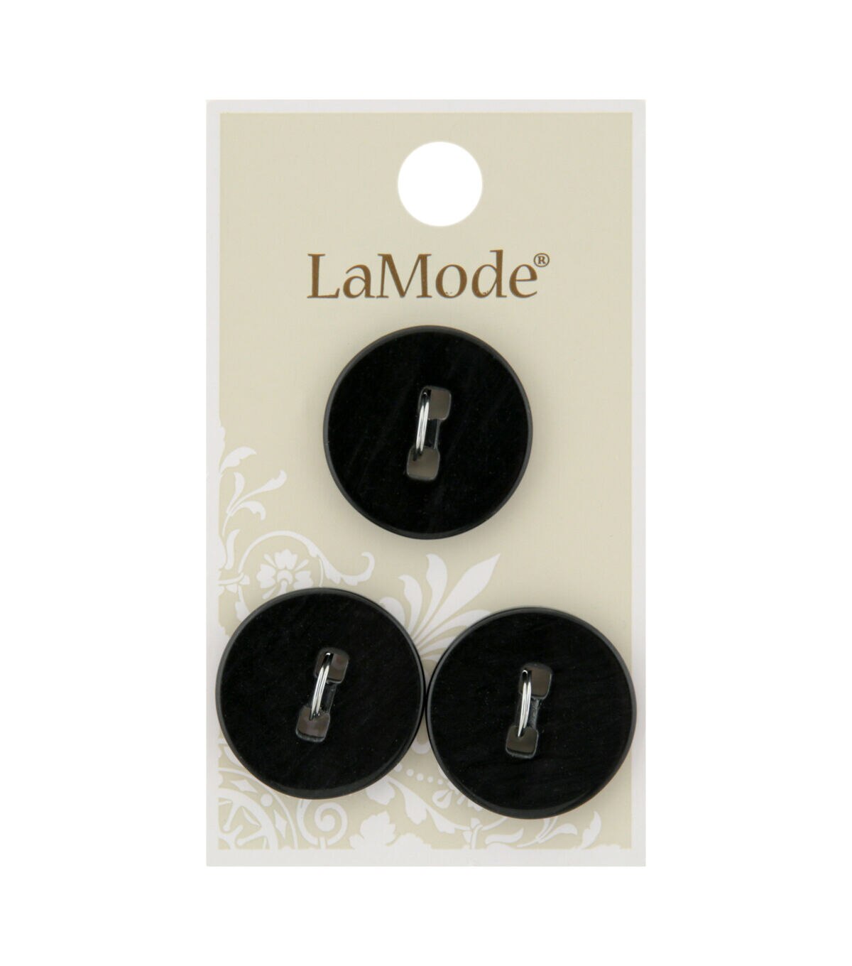 These black La Mode 2 Square Hole Buttons-Black are perfect for sewing, crafting and fashion projects. The 22 mm sew-through buttons come in a pack of three.