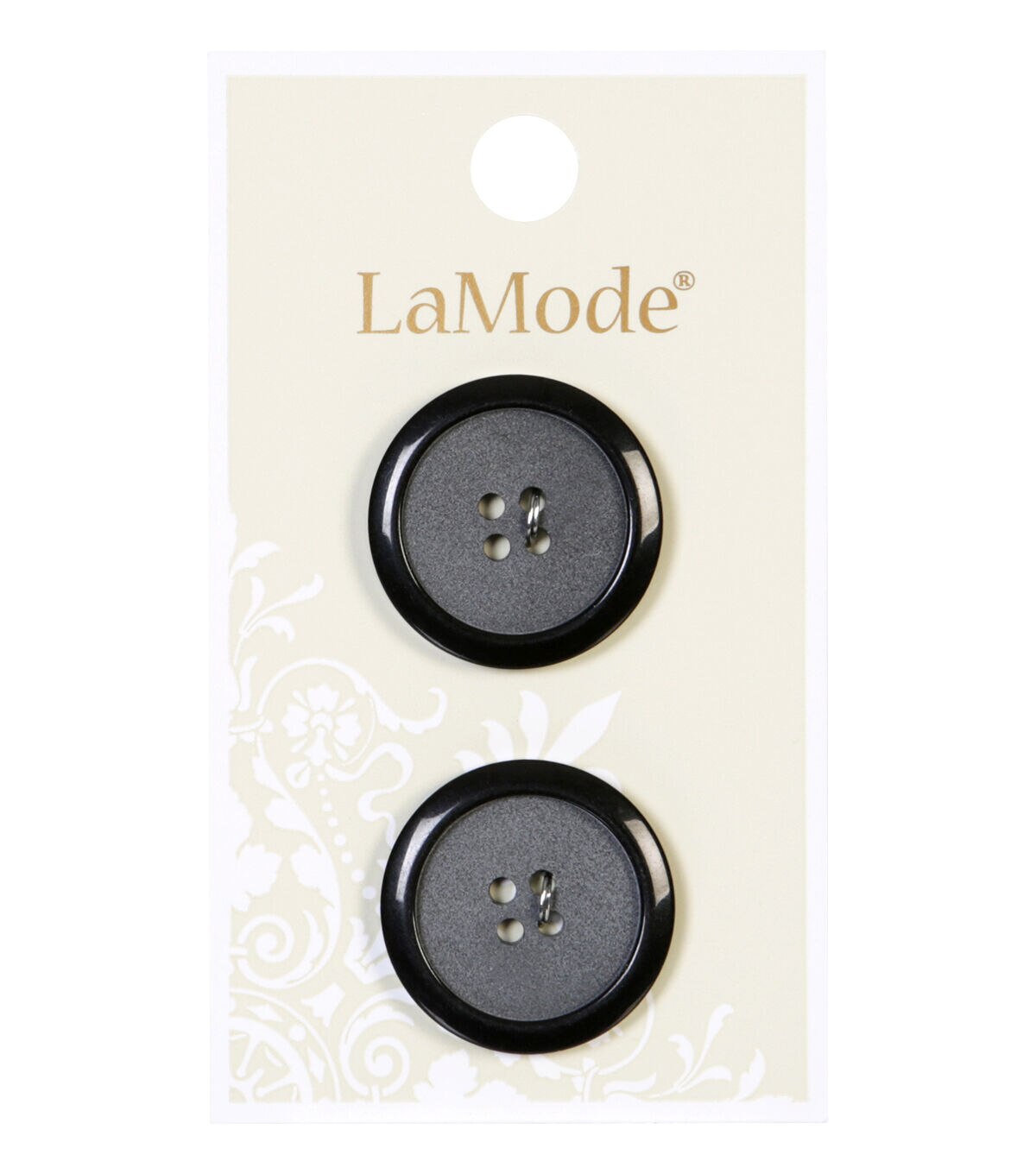The LaMode Buttons - Black are just what you need to glamorize your craft and sewing creations. Designed with a black glossy border and gray textured center, these elegant buttons will make a great addition to your fashion projects. They will look great on blazers, coats, tops and more. This pack comes with two buttons.Brand: La Mode Collection: Apparel Buttons Includes two buttons Size: 0.88 inch Care: Washable & dry cleanable
