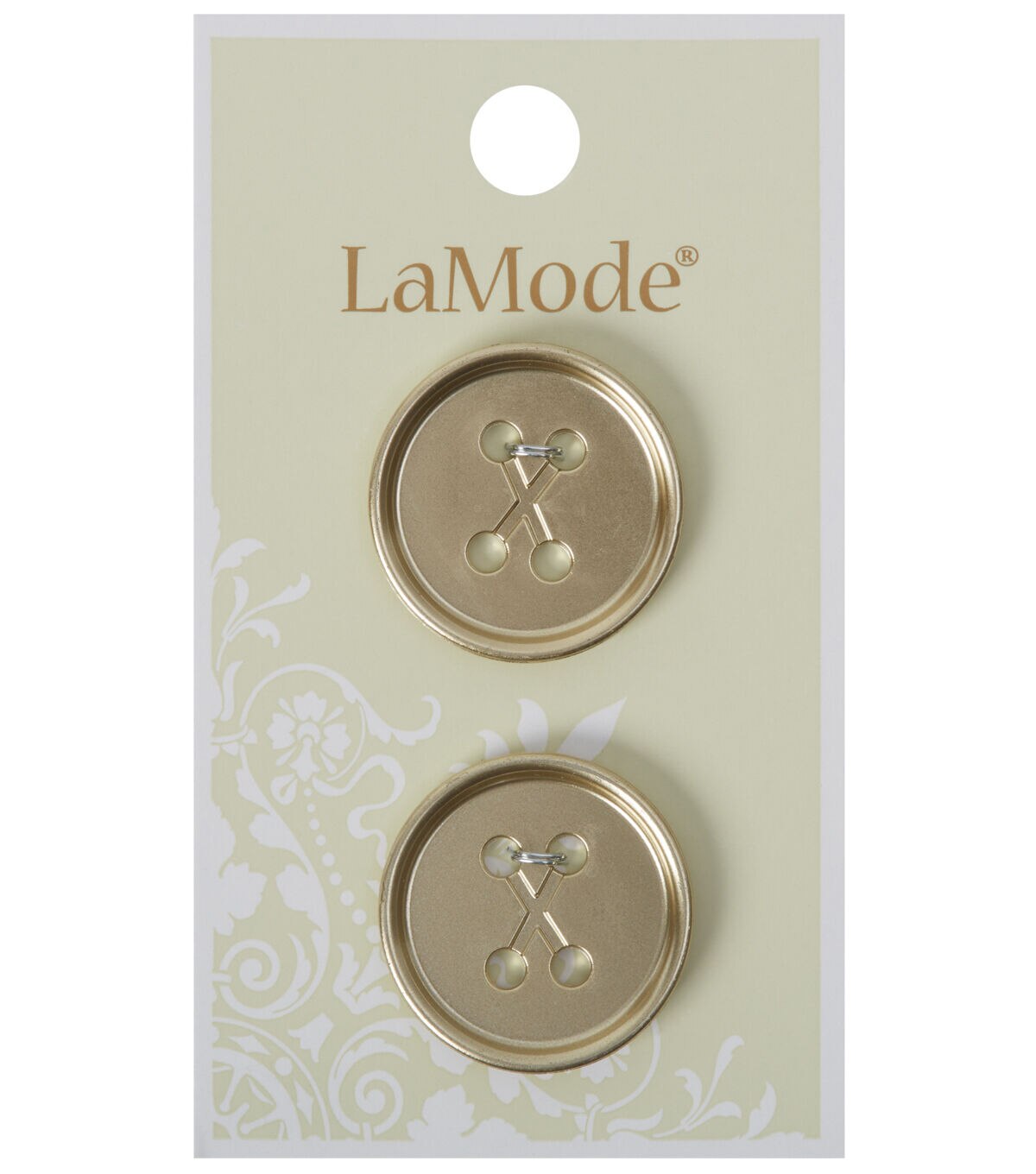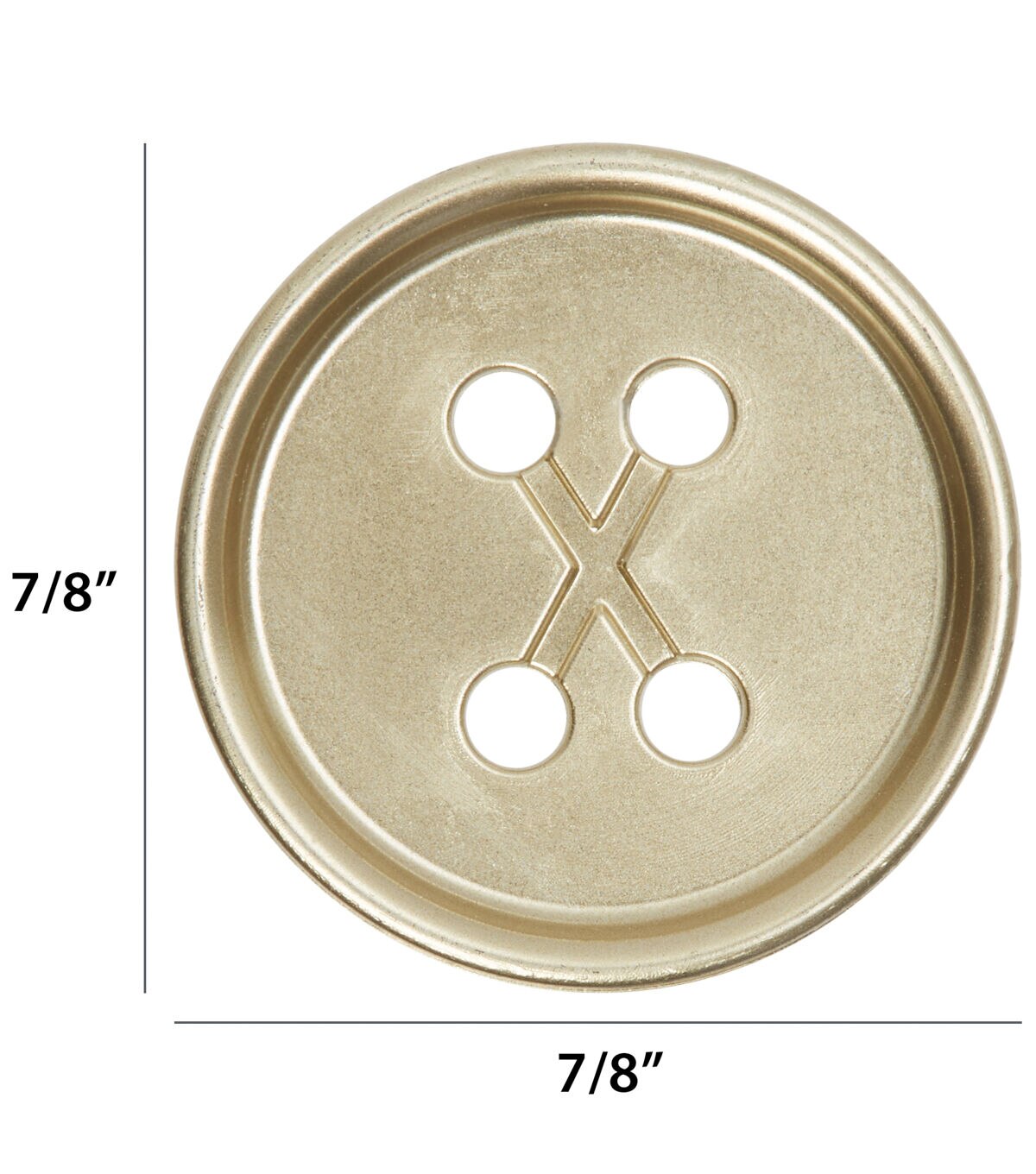 The La Mode 4 Hole Buttons - Gold will make DIY tops, dresses, shirts and more stand out. These buttons are simple in design and sport a lovely gold tone. Use them as mock buttons for decorative purposes or for fastening. You can also add them to your handbags that have flap closures.