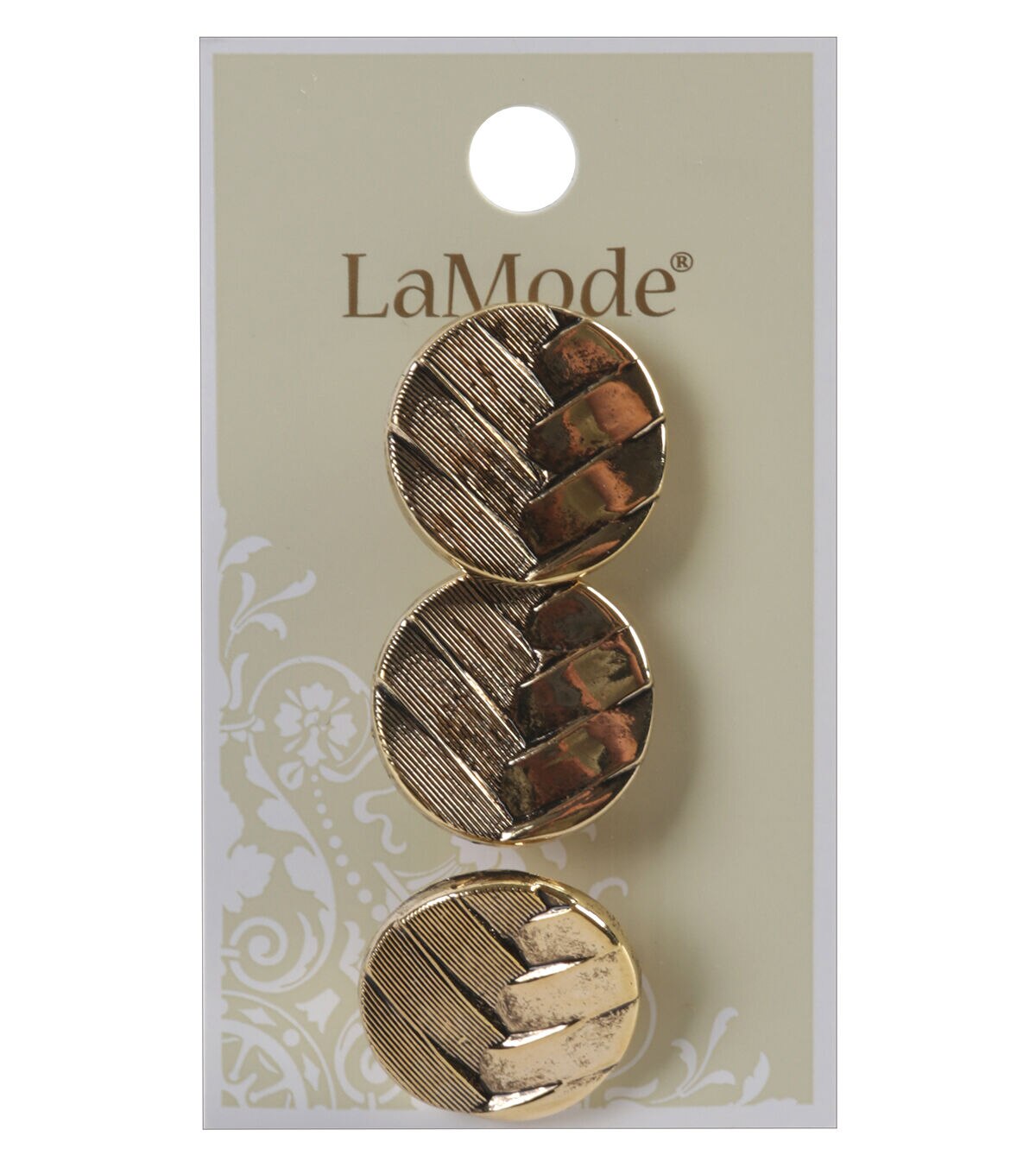 The La Mode Shank Buttons-Gold will lend the perfect finishing touch to your handmade creations. You can add them to your handmade skirts, tops, dresses, coats and more. This pack comes with three oval buttons that sport a unique pattern and stunning gold-toned finish. They will also be perfect to adorn wallets and tote bags.