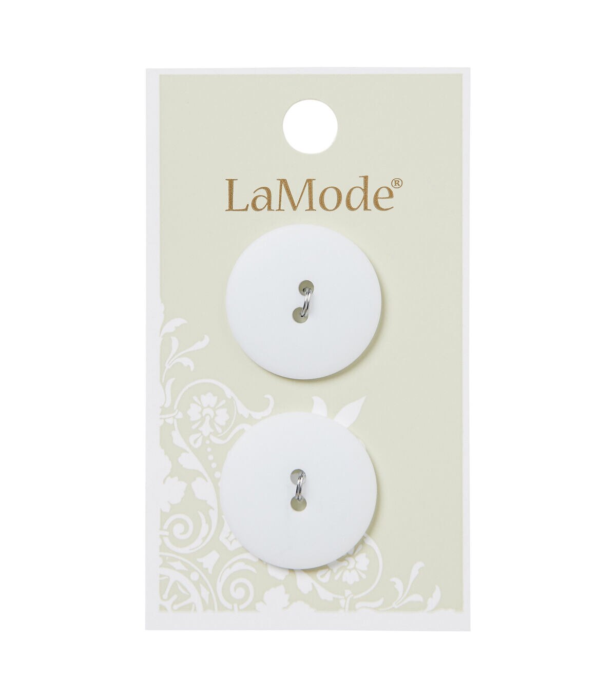 Embellish a DIY crafting project with the La Mode Matte White 2-Hole Buttons. These simple yet stylish buttons sport a white shade. They will make your handmade dresses or tops stand out. You can also stitch them onto fabric surfaces. This pack includes two buttons.
