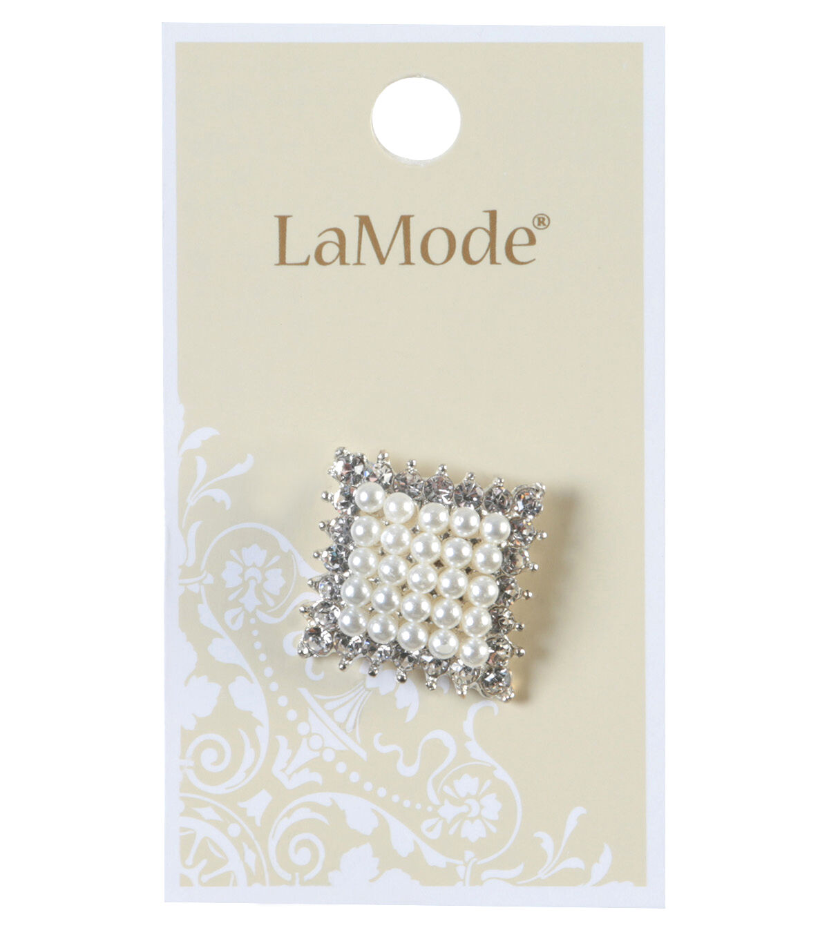 • La Mode 7/8" Pearl & Rhinestone Square Shank Button
