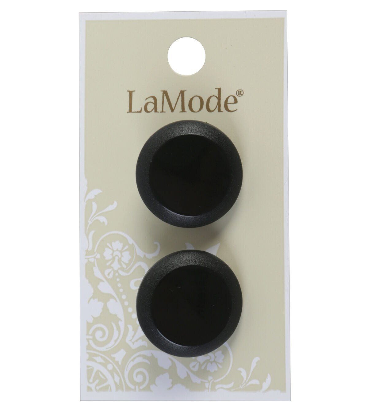 The La Mode Shiny Round Black Shank Buttons with Matte Rim are perfect to prettify your sewing projects. This pack contains two buttons that sport a black hue with a matte rim. You can use these shank buttons to decorate a DIY dress, top, shirt, jacket and more. Team them with colorful buttons for added visual flair.