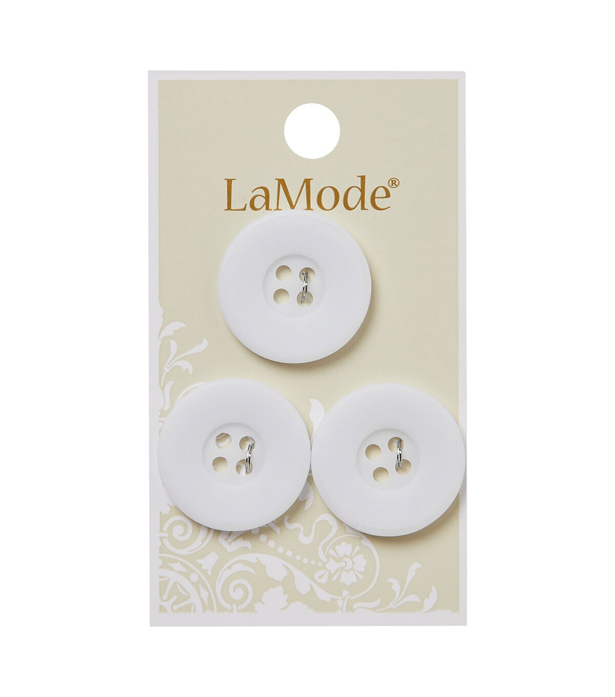 The La Mode 4 Hole Buttons - White will add understated charm to your handmade creations. These simple round buttons sport a white shade and will complement dresses or tops in any color. You can also team them with buttons in contrasting shades and use them to decorate cushion covers, totes, headbands and more.