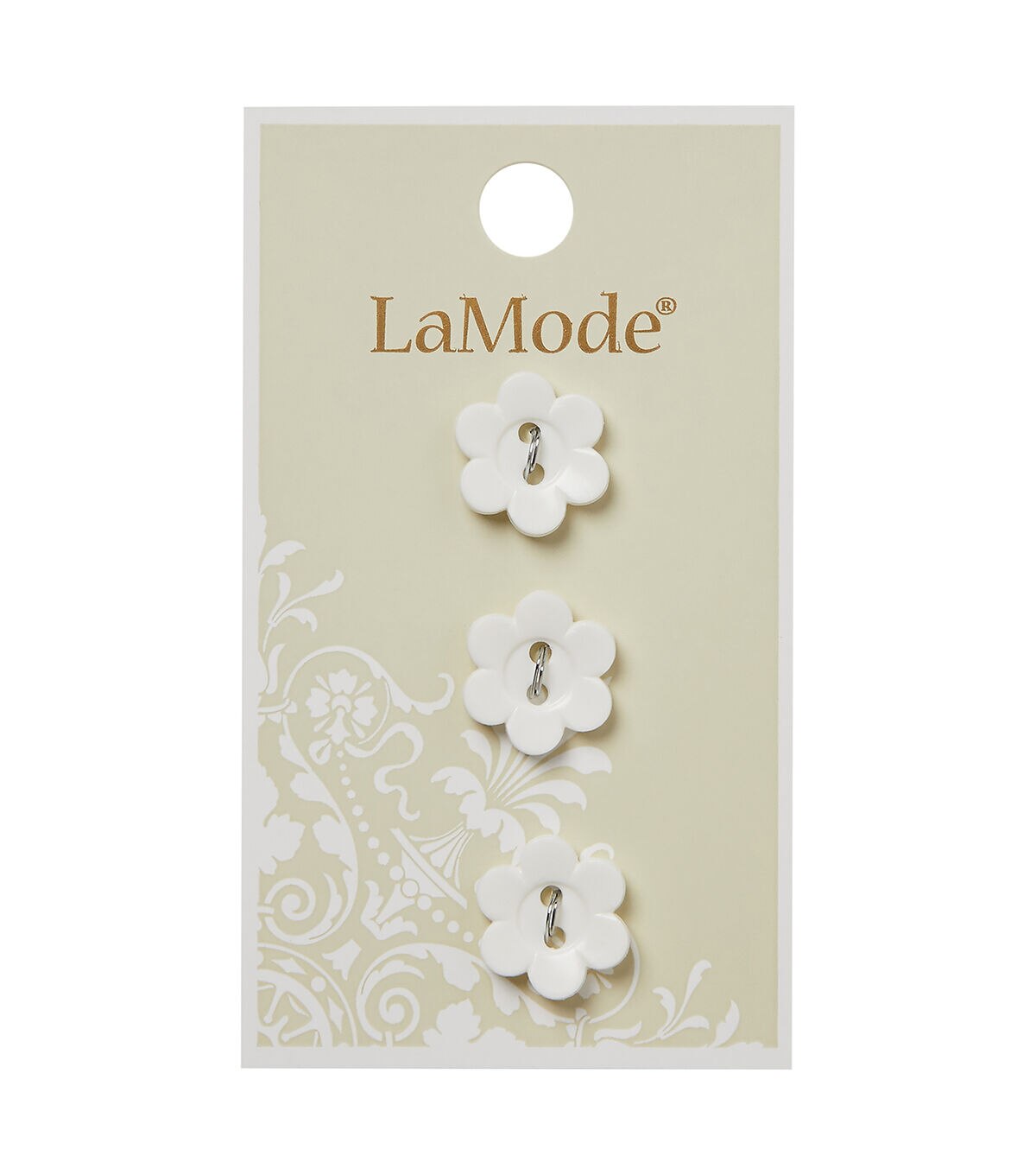 The La Mode 2 Hole Flower Shaped Buttons - White will make a cute addition to your sewing projects. These buttons are shaped like a flower and flaunt a white shade. You can add them to your little one’s handmade dresses or tops. Team them with colorful buttons and use them to embellish photo frames, cushion covers, fabric bags and more.