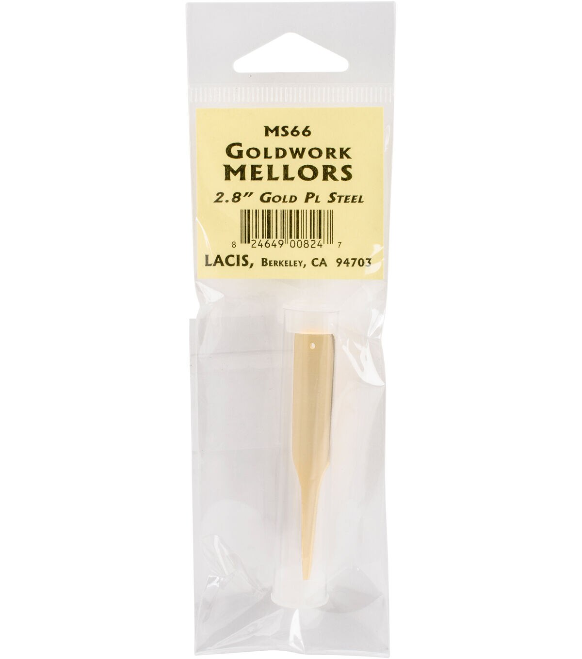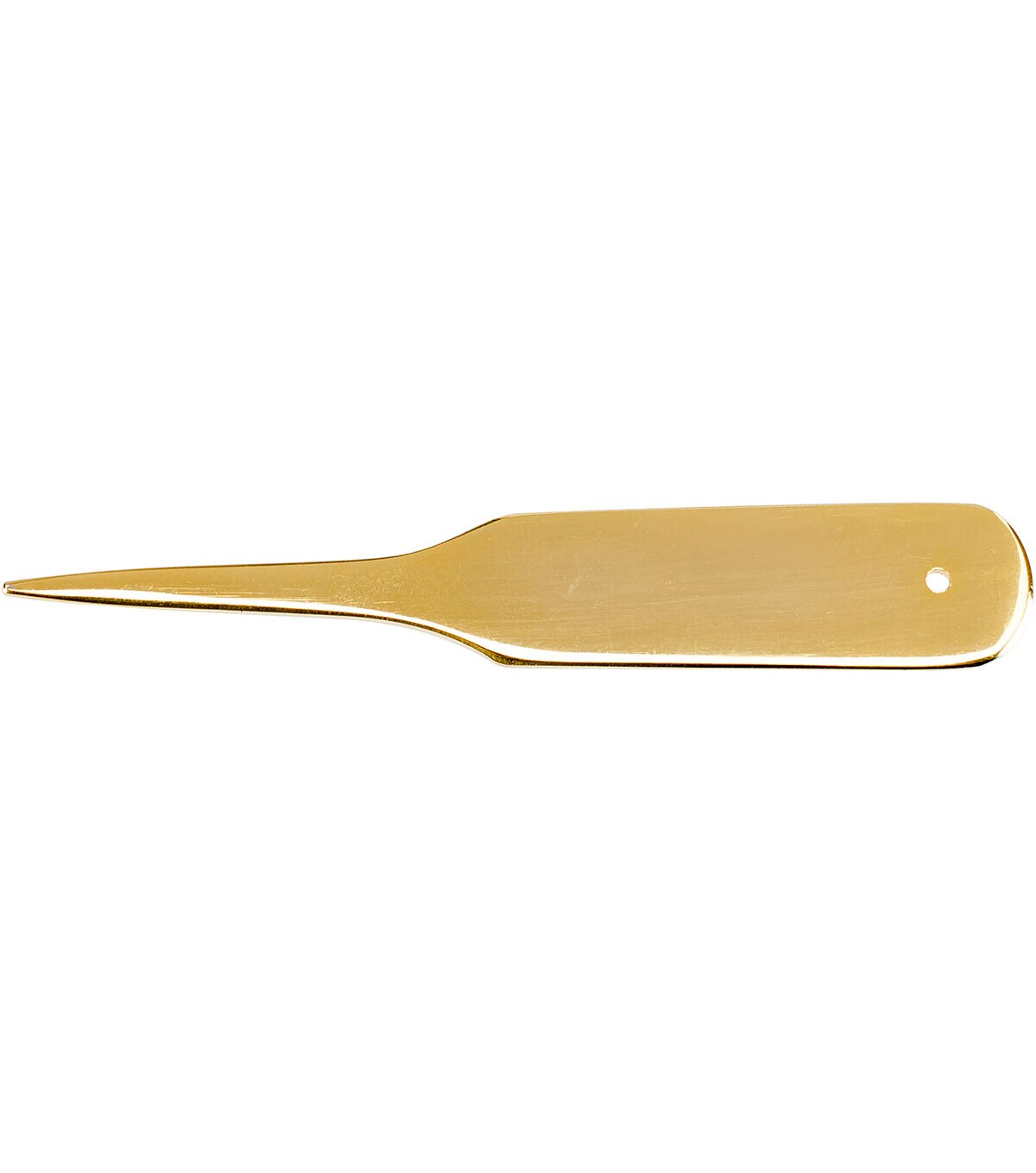 Use the Lacis Goldwork Mellor when embroidering with bullions in gold and silver tones. The thin, highly polished, gold-toned tool is used as a stiletto to control the bending of coiled metallic thread and as a laying tool for gold-toned and silk thread embroidery. This pack contains a 2.8-inch goldwork mellor.