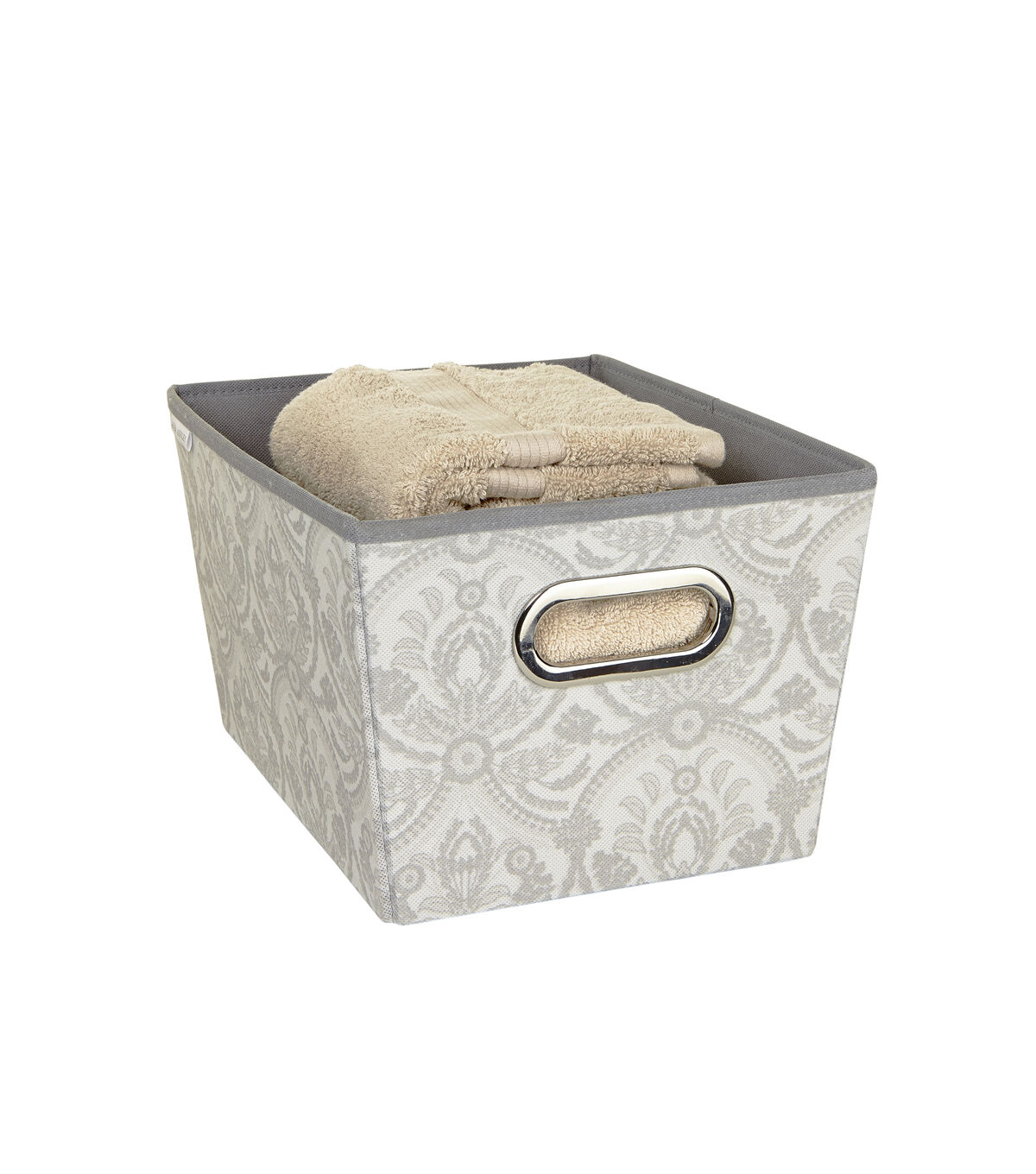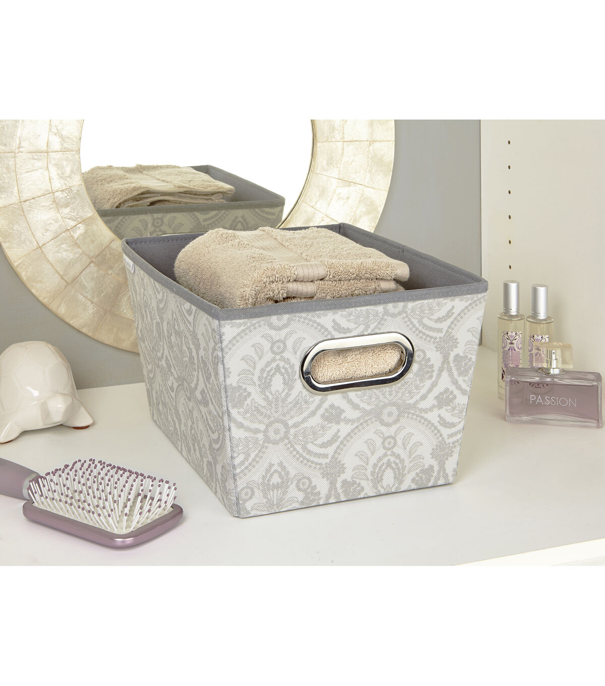 These Laura Ashley storage totes keep your favorite loose items safely in place. Also, it gives your room a chic look while adding storage space to it. Great for shelving and flat surfaces. Built in hinge for easy access, and helps you have your room neatly organized. Perfect for those loose items, towels, books, accessories and much more! Can be stored away or added as part of any room decor.