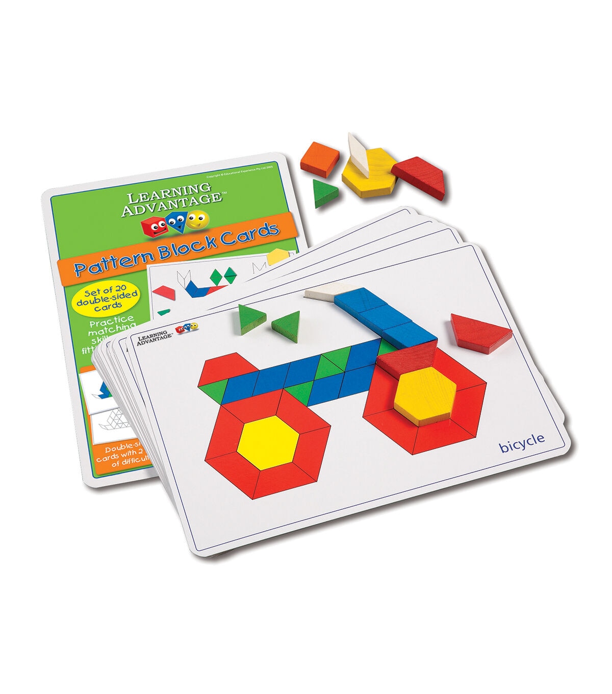 Two levels of difficulty make these pattern block cards perfect for the beginning or intermediate student. Ideal for matching skill practice and fitting shapes together! Includes 20 durable, double-sided 8.28" x 11.69" cards in a reclosable bag.