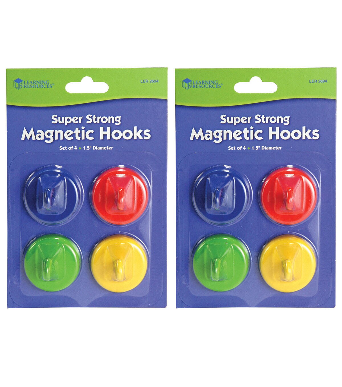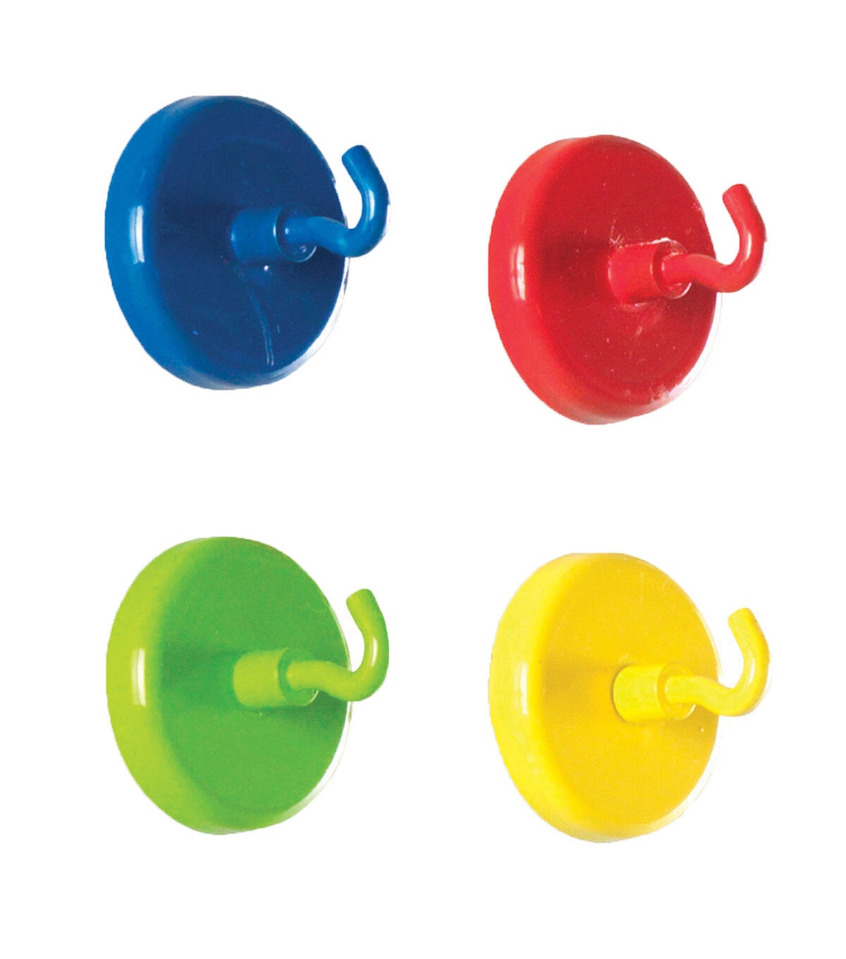 Super Strong Magnetic Hooks lend you a strong hand by holding up to 20 pounds each! Set of 4 bright colors- red, blue, green and yellow. Measures 1 1/2" in diameter. Sold as 2 packs for a total of 8 hooks.