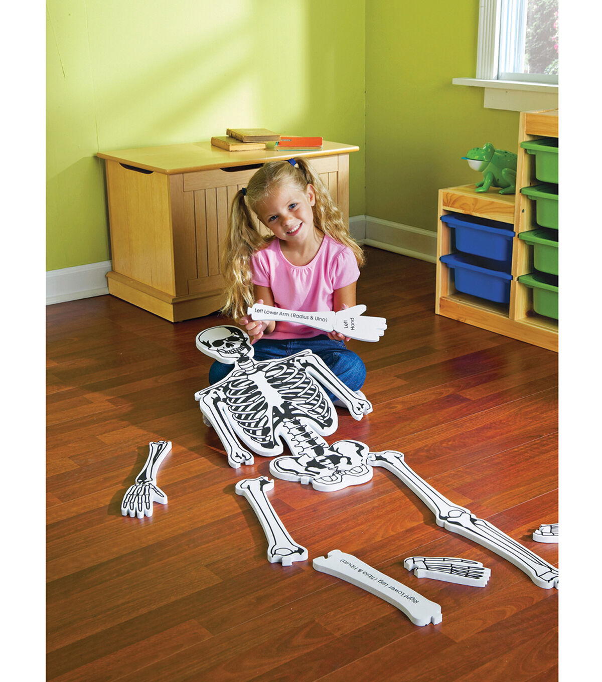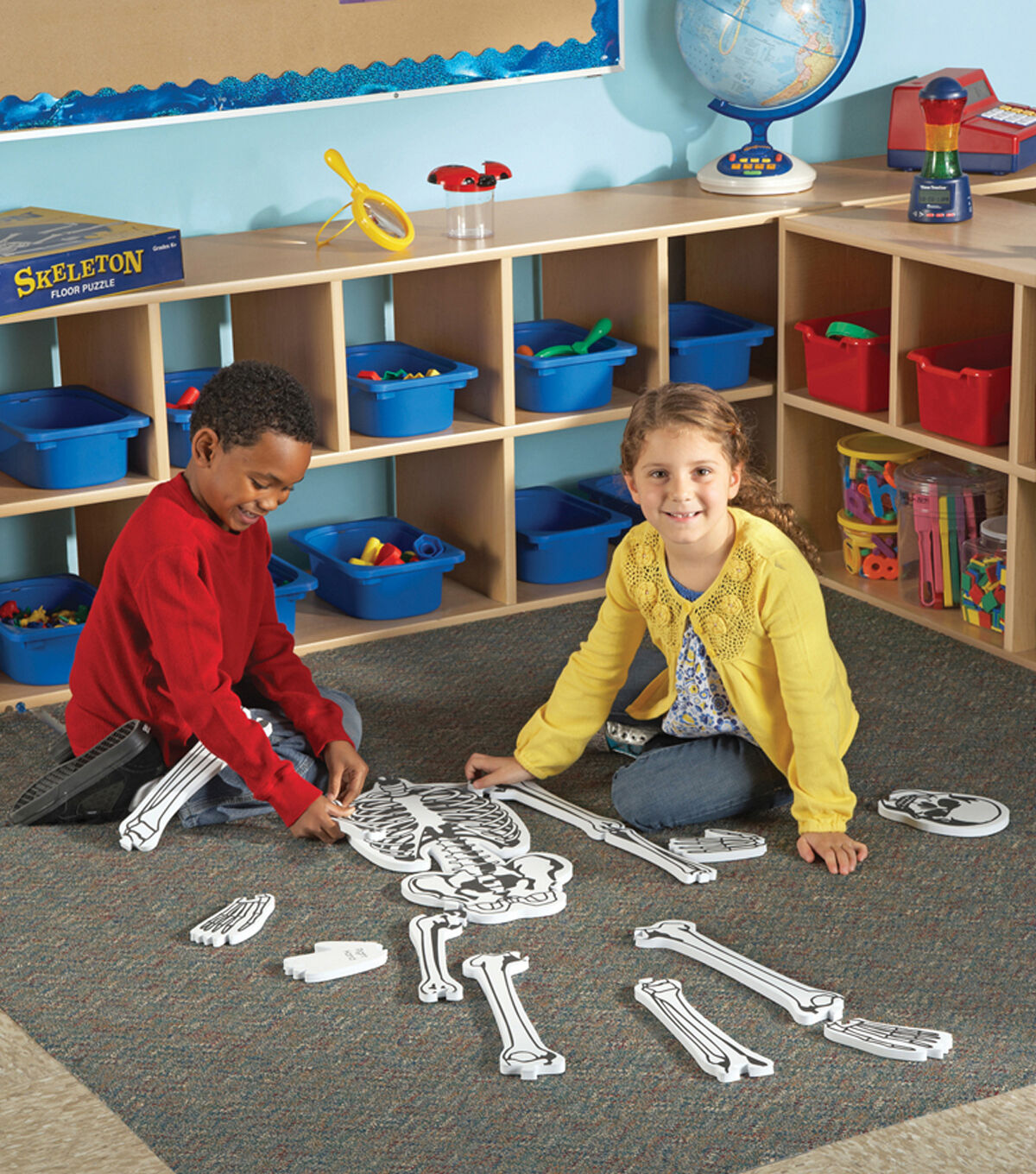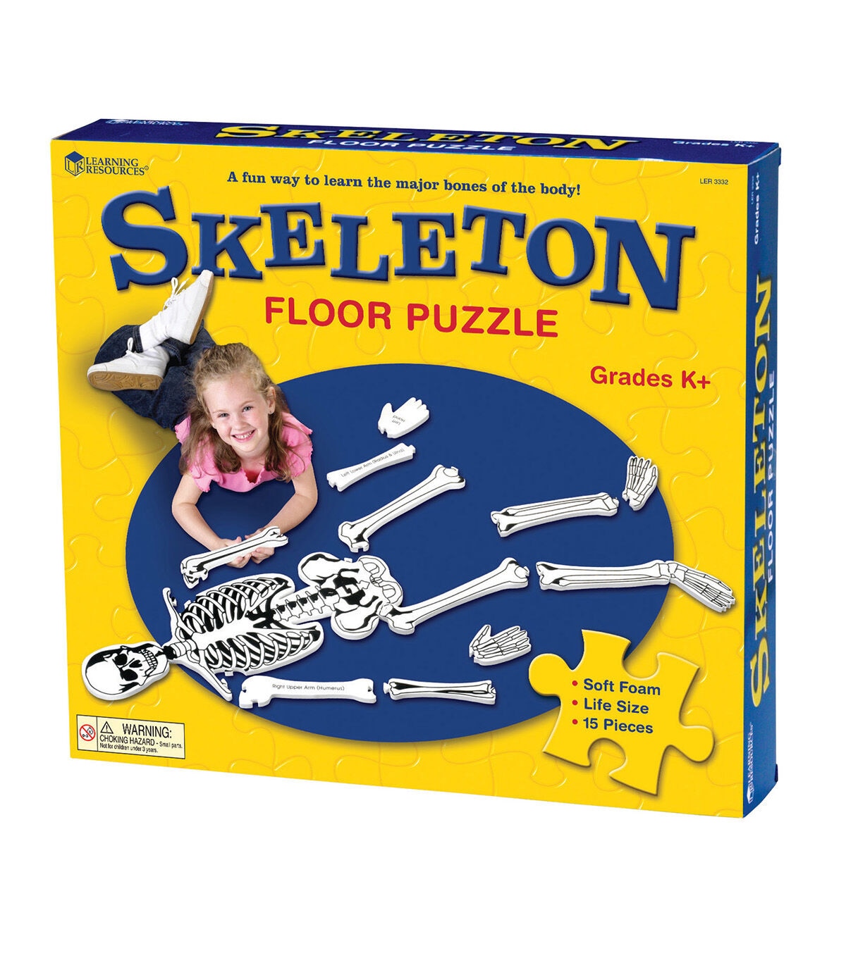 The Learning Resources Foam Skeleton Floor Puzzle is a great way to begin classroom lessons on the human skeletal system. Students learn all the major bones as they assemble this soft foam skeleton puzzle. They can attach the head bone to the neck bone and much more with this puzzle set. It encourages kids to explore the human body by piecing together a life-size puzzle. This puzzle invites children to make comparisons to their own bodies as they lie on top of the completed puzzle. It features 15 illustrated pieces with both formal and common bone names printed on the reverse side. This will make a fun activity for spooky-themed parties.