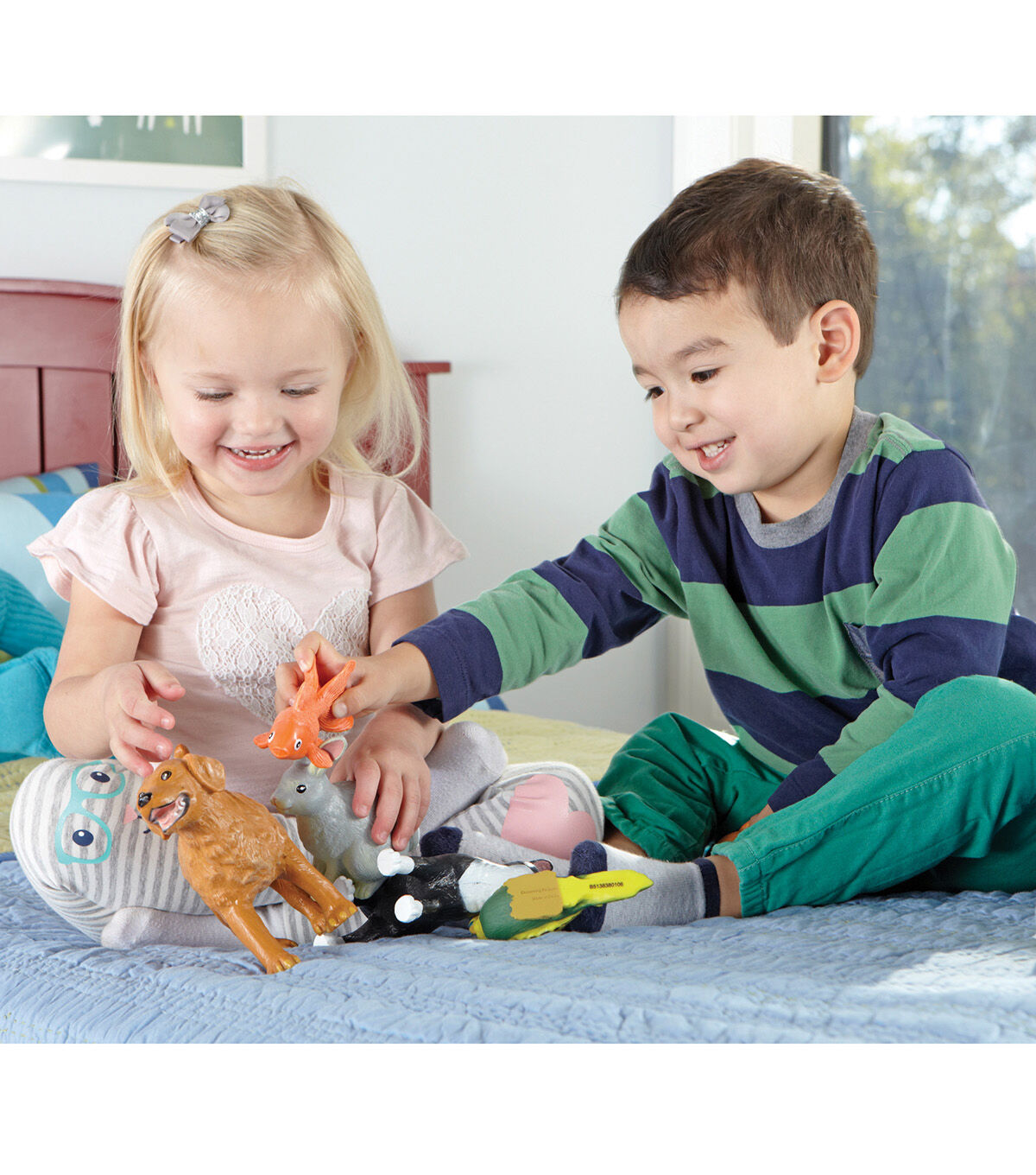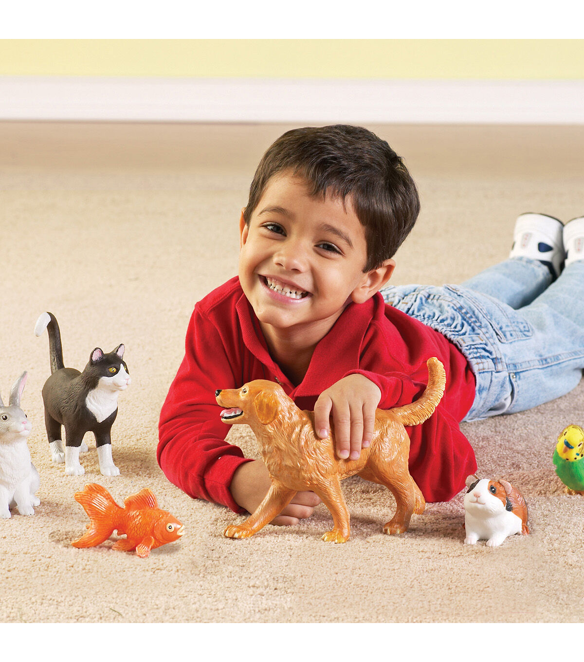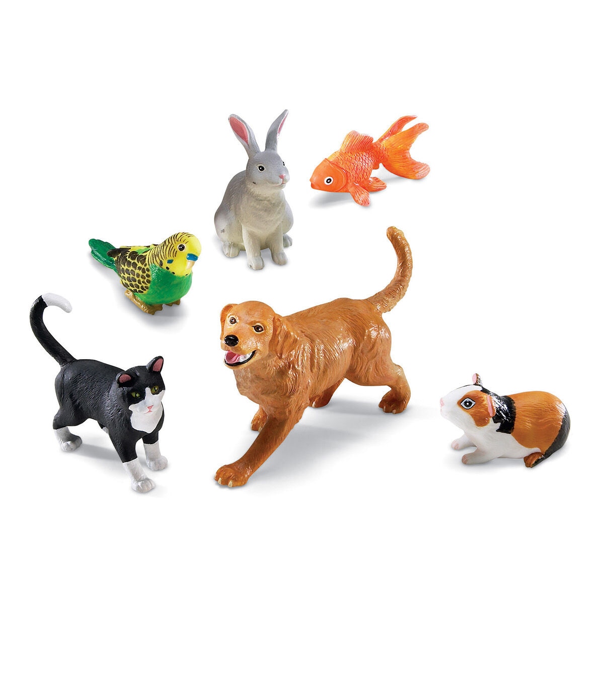 Realistically detailed animals designed for little hands and big imaginations! Figures invite imaginative play and are perfect for vocabulary development. Activity guide includes facts about each animal and early science discussion starters. Made of durable, non-toxic plastic. Includes: Dog, Cat, Rabbit, Guinea Pig, Fish, Bird. Largest animal (dog) measures 8.5"L x 6"H. Grades: Toddler +