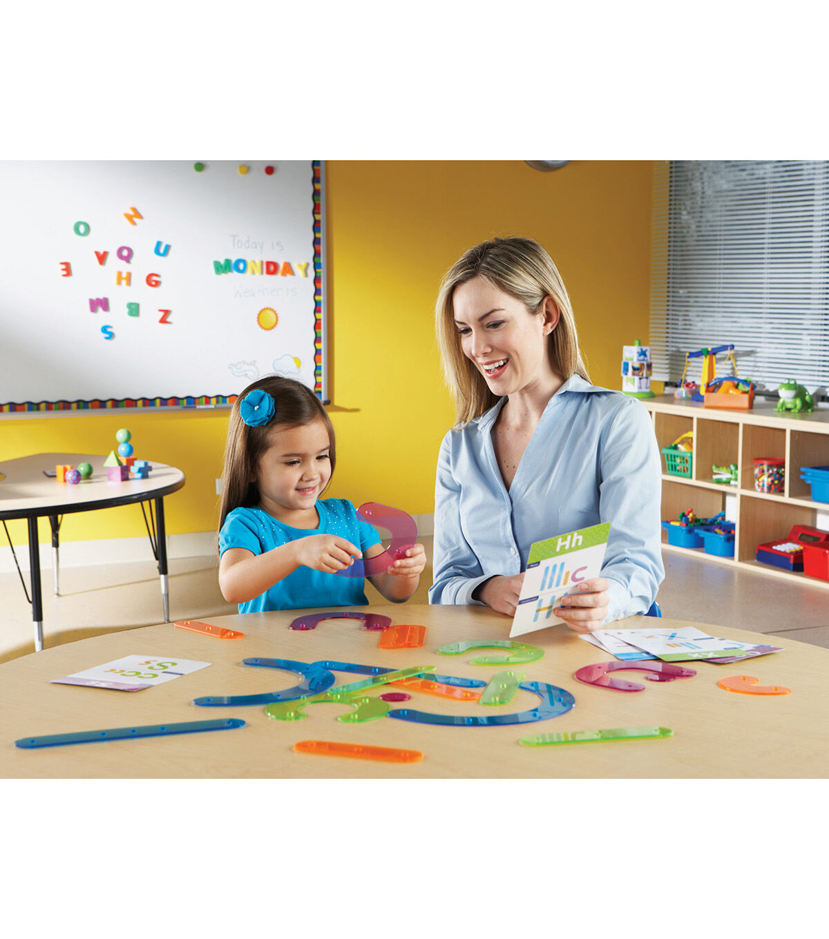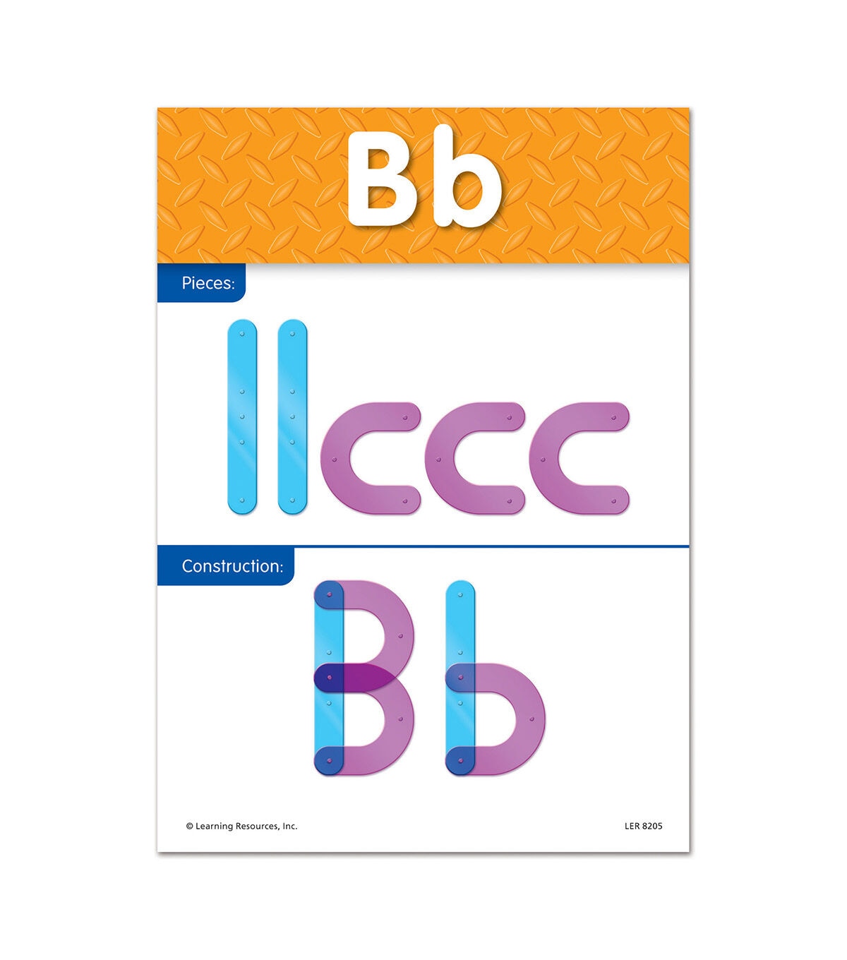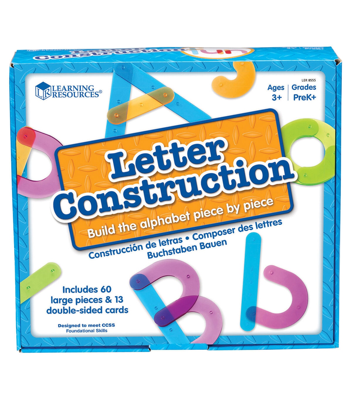 Building letters is a snap with the Learning Resources Letter Construction Activity Set. Snap together color-coded pieces to build uppercase and lowercase letters plus fine motor skills. Kids can also practice letter recognition and pre-handwriting. With 60 pieces in all including straight lines, curves, C-curves, hooks and dots, children can build accurate upper and lowercase letters in just a few steps. This set also 13 double-sided activity cards with step-by-step directions and an activity guide.