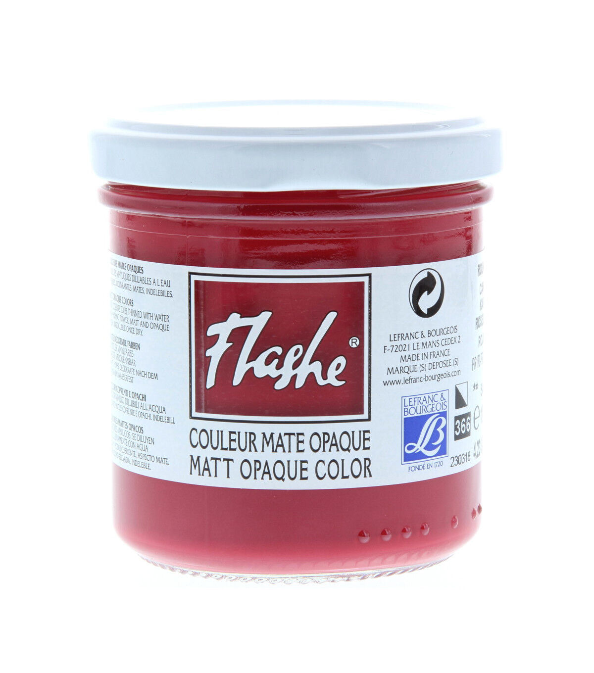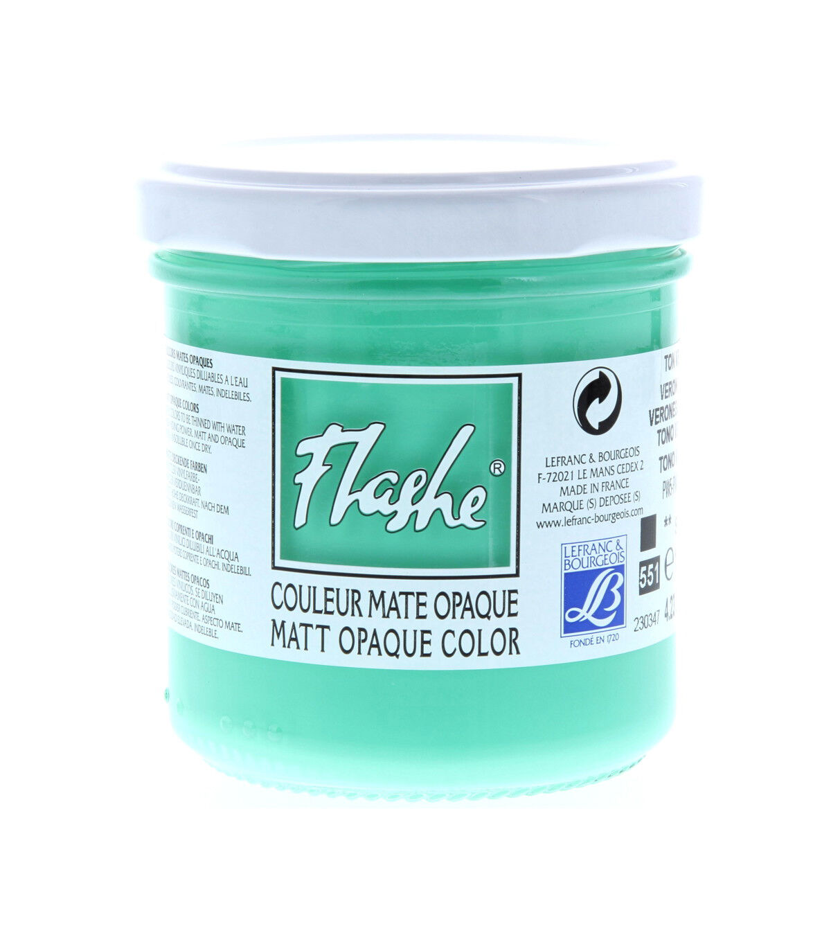 Flashe is an extra fine, vinyl-based professional grade permanent paint ideal for fresco and wall painting, faux finish, theater decoration and more. Visually similar to gouache, old tempera paints and primitive painting grounds, it is beautifully matte, velvety and opaque. Dilute it with water to create a range of possible techniques - from dense, highly opaque application to transparent watercolor effects. The supple film offers good adherence and resistance to weather aggression. It is also compatible with paper, canvas and other supports or for preparing grounds. Apply color with a brush, paint gun or sponge.