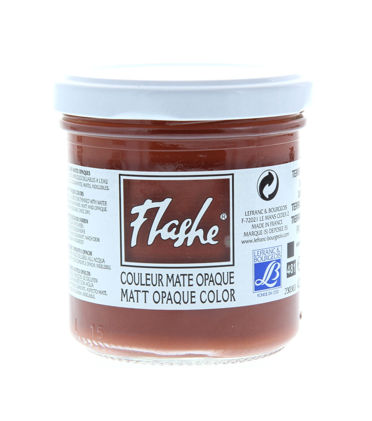 Flashe is an extra fine, vinyl-based professional grade permanent paint ideal for fresco and wall painting, faux finish, theater decoration and more. Visually similar to gouache, old tempera paints and primitive painting grounds, it is beautifully matte, velvety and opaque. Dilute it with water to create a range of possible techniques - from dense, highly opaque application to transparent watercolor effects. The supple film offers good adherence and resistance to weather aggression. It is also compatible with paper, canvas and other supports or for preparing grounds. Apply color with a brush, paint gun or sponge.