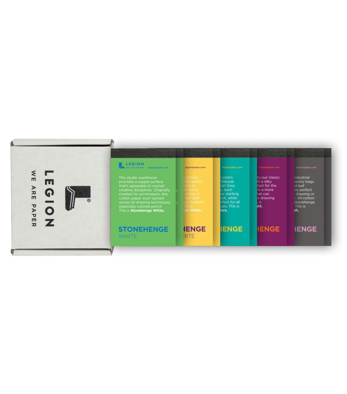 The Stonehenge Mini Paper Pad Set features two each of Stonehenge White, Stonehenge Warm White, Stonehenge Kraft, Stonehenge Colors and Stonehenge Light for a total of ten mini 2.5" x 3.75" pads. Perfect for both aspiring and professional artists to use with all media including watercolor, drawing, printmaking and inking. The mini pad format is ideal for trying out surfaces to experiment and create.