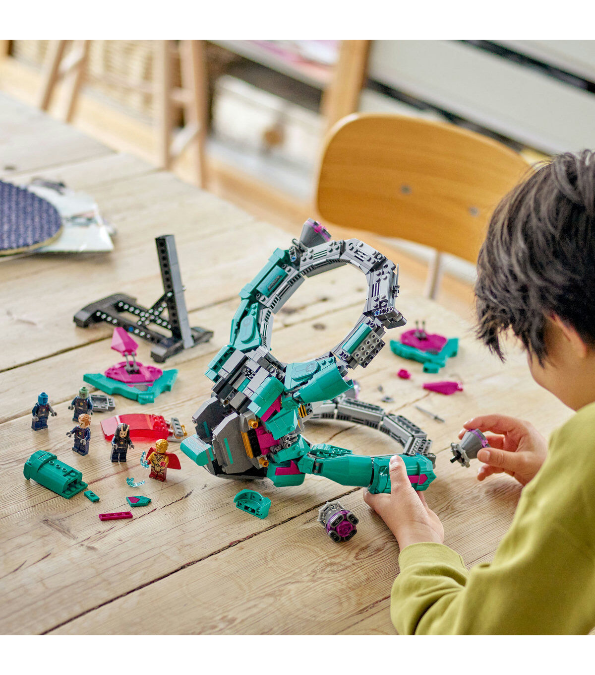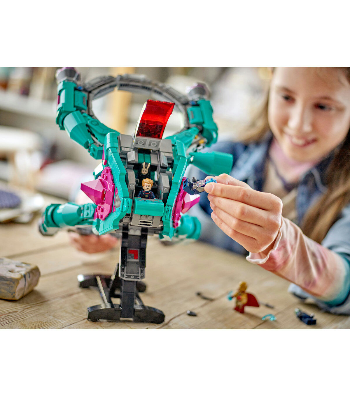 - Spaceship and 5 minifigures for play and display, from Marvel Studios’ Guardians of the Galaxy Volume 3.