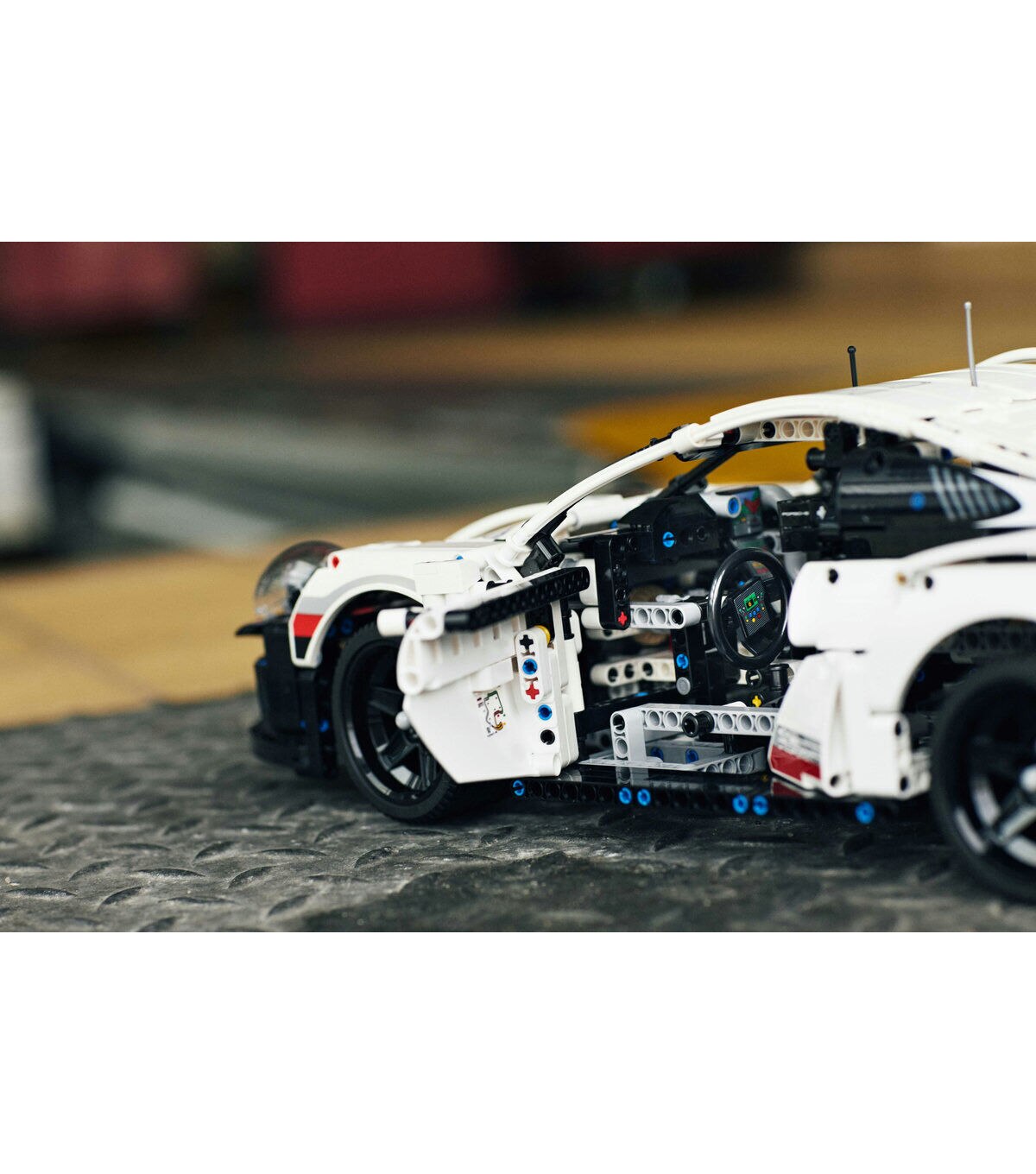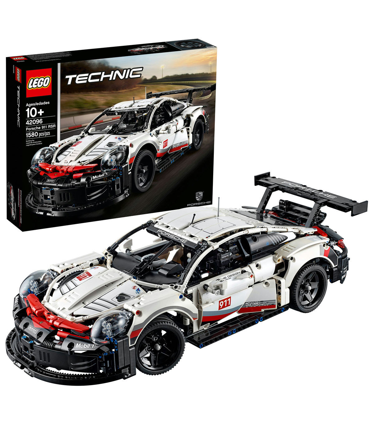 Explore innovational engineering and craftsmanship from one of the world’s leading automobile manufacturers, with this awesome LEGO® Technic Porsche 911 RSR model car kit. Developed in partnership with Porsche, this replica model captures the powerful appearance and iconic contours of the 911 RSR, a vehicle crafted to master the challenges of international GT endurance racing. Exterior details include a rear wing with ’swan neck’ mounts, extended rear diffuser and special side mirrors—all designed to maximize aerodynamic efficiency. Open the doors and you’ll discover a cockpit packed with realistic details, including a radar screen, working steering, fire extinguisher system and even a track map of the Laguna Seca circuit printed onto the driver’s door. This amazing model also comes with a visible, working differential, independent suspension and a six-cylinder boxer engine with moving pistons positioned in front of the rear axle. Black spoked rims, realistic head and tail lights and an authentic white, red and black color scheme with sticker detailing add the final touches to this truly remarkable LEGO supercar model!