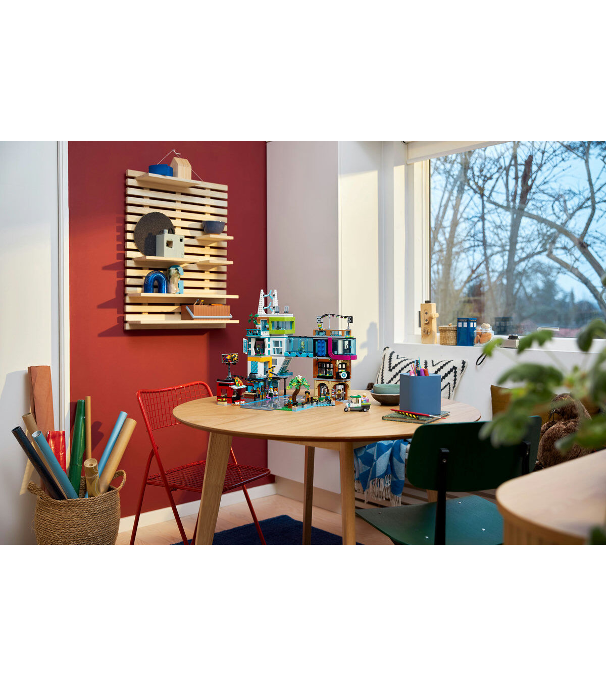 Welcome to Downtown LEGO City. There’s a park, barbershop, vet clinic, blogging studio and a rooftop discotheque. A covered bridge leads to a second 3-level building with a comic store, tech store, janitor’s room and a modern hotel. Solar panels and wind turbines supply clean energy, while a cozy street-food area supplies the citizens with pizzas, fresh drinks and noodles. This place is awesome!