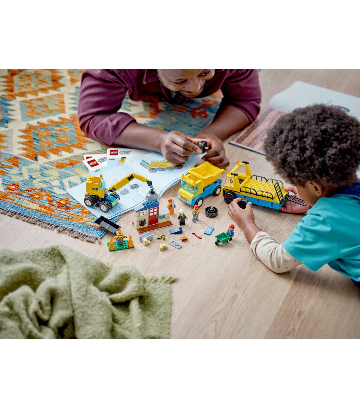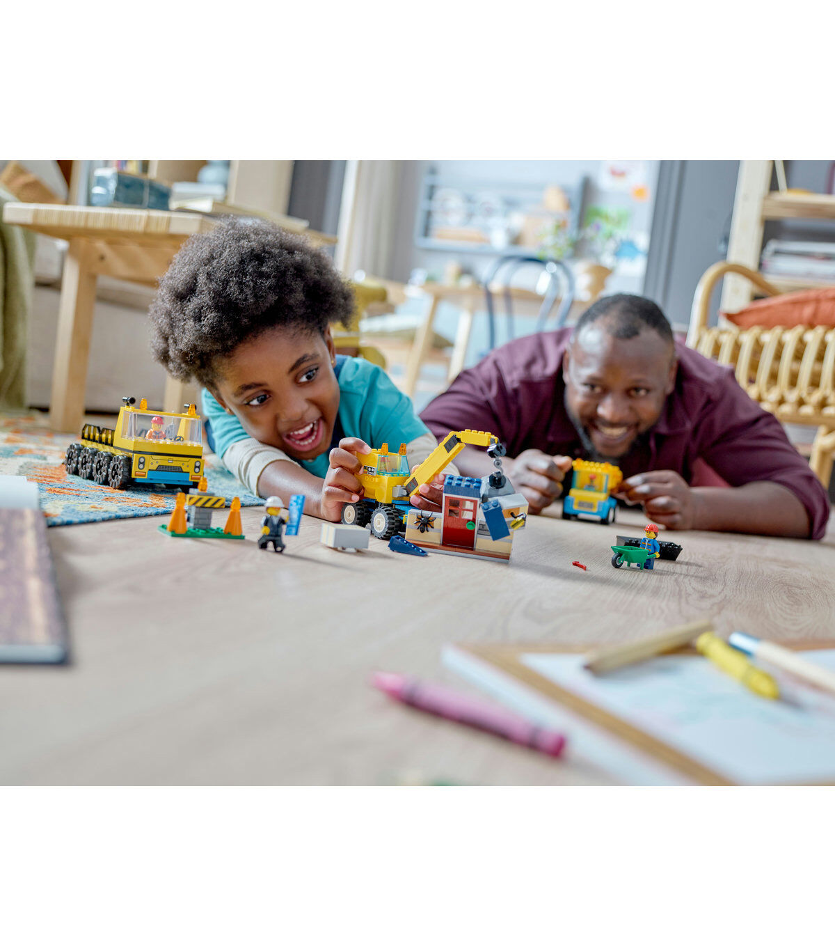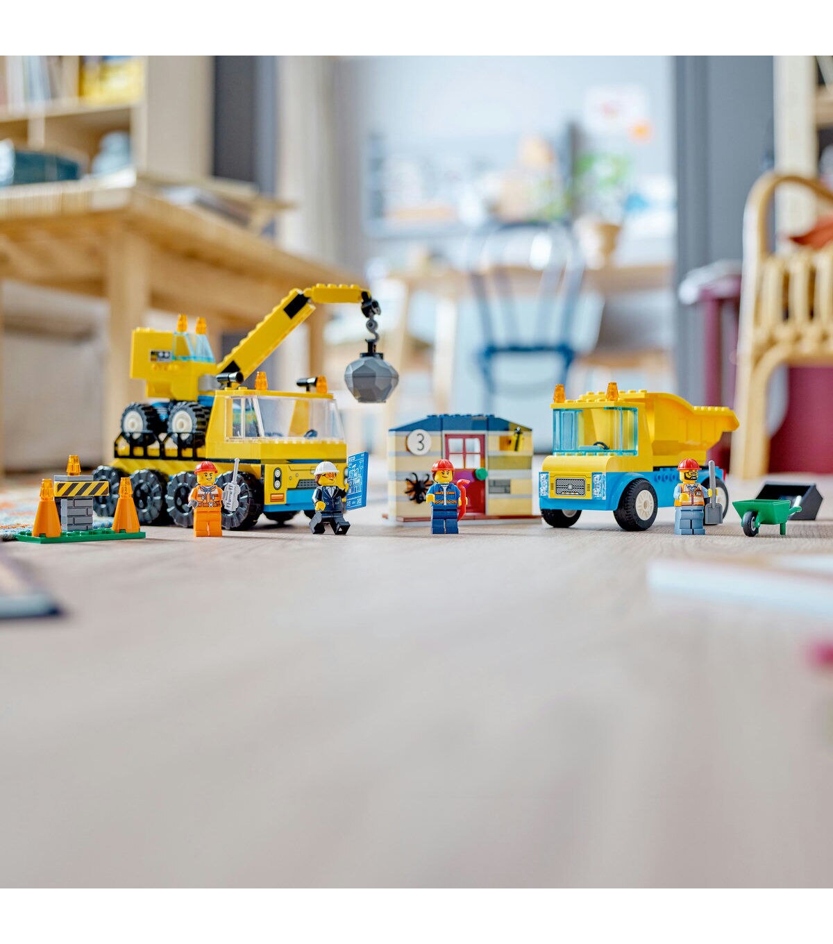 Join the LEGO City construction workers at the demolition site. Use the barrier to cordon off the area, wheelbarrow the cute spider to safety and get to work. Lower the transporter’s ramps to deploy the wrecking ball crane. Swing the ball to demolish the old house. Then fit the bucket to scoop the rubble into the dump truck. When you’re done, load up your equipment and head to the next job.