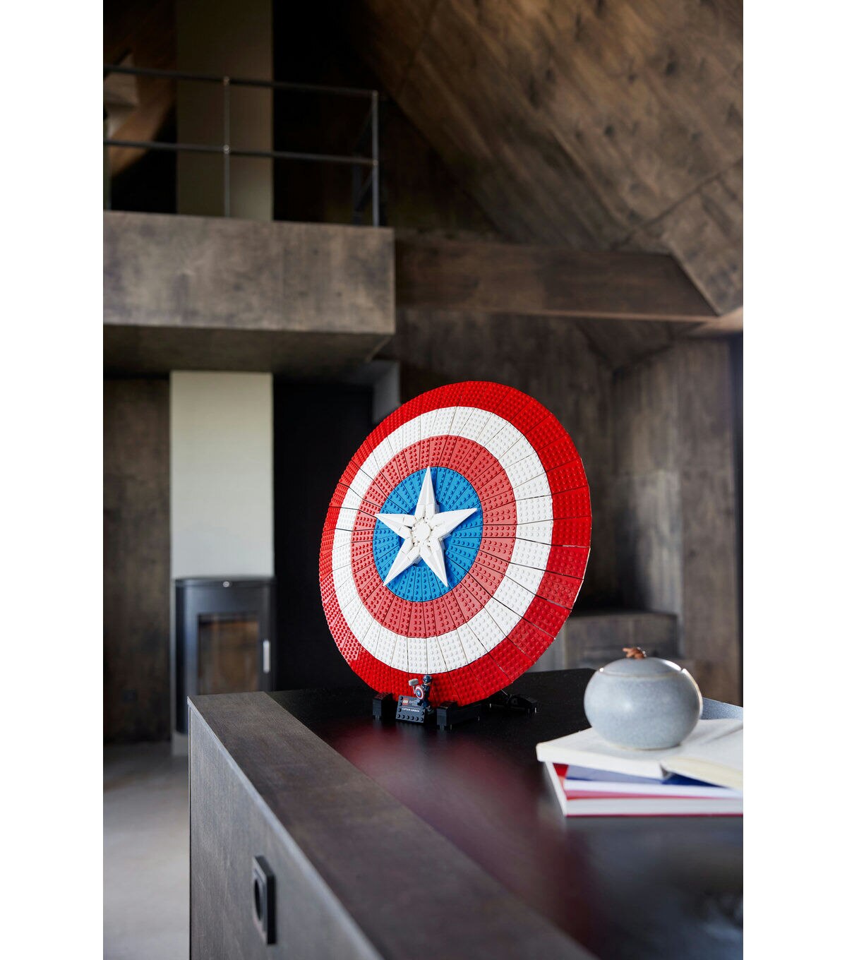 - A 3,128-piece recreation of Captain America’s iconic shield