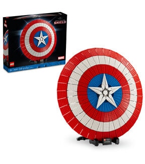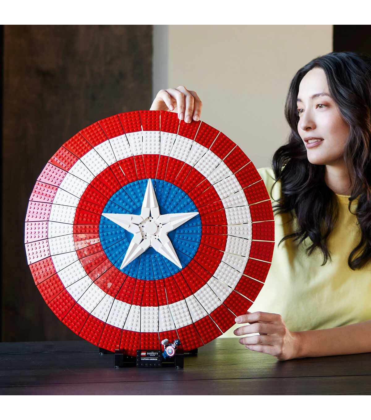 - A 3,128-piece recreation of Captain America’s shield, measuring over 18.5 in. (47 cm) in diameter, for adult enthusiasts to build and display.
