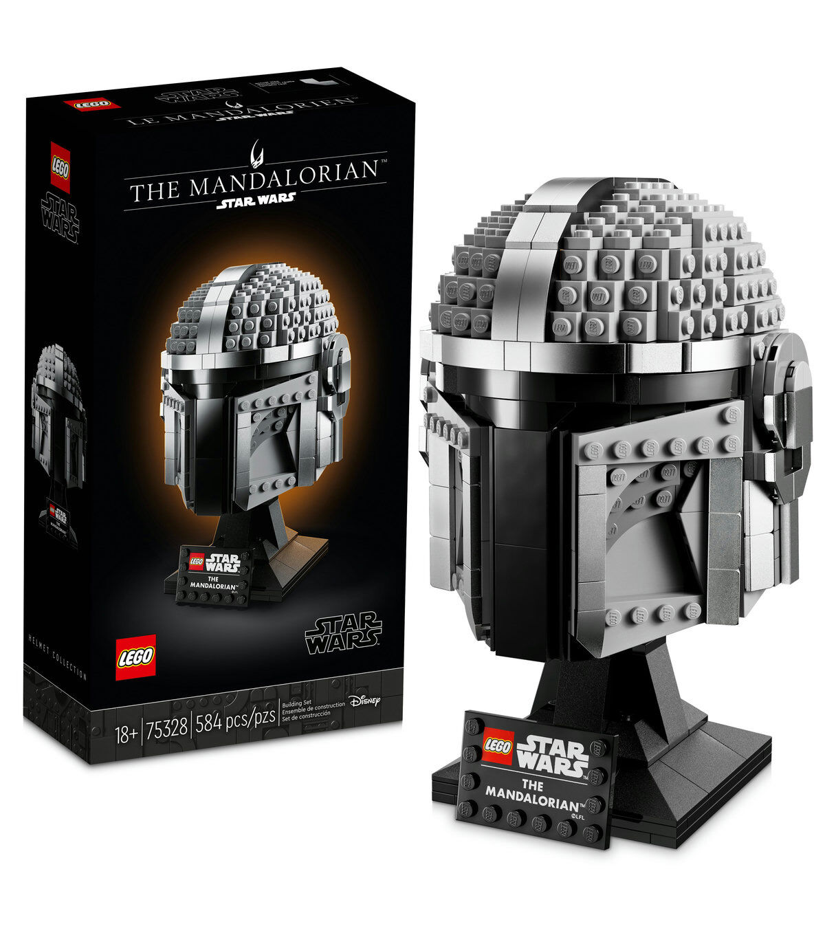 It’s time to pay homage to legendary bounty hunter The Mandalorian. Channel your focus to build a sleek LEGO® Star Wars replica of his iconic helmet. Use the drum-lacquered LEGO elements to recreate the metallic shine of beskar. Connect bricks in different shades of gray to highlight the helmet’s contours. Then display the impressive bounty of your creative mission on its stand with nameplate.