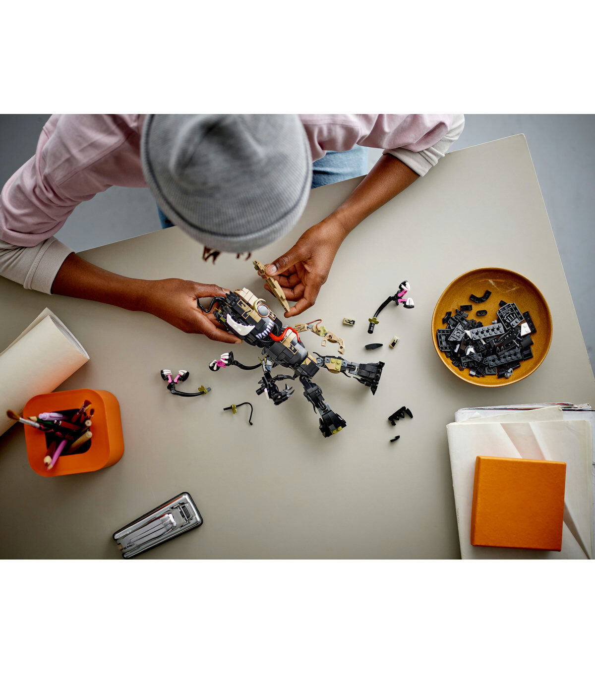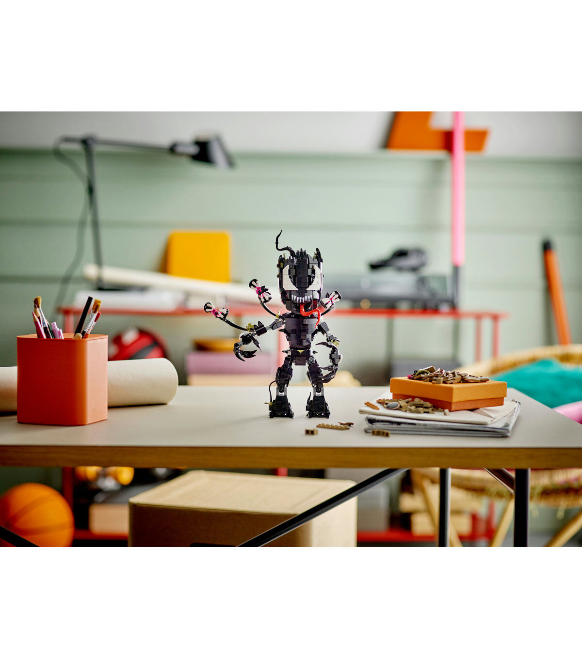 Build your own half-Venomized Groot – then Venomize him even more, brick by brick! How much of the long-tongued, sharp-toothed, tentacled terror you add to supercute Groot is up to you. With movable arms, legs, hips and head, your Venomized Groot is always ready for action and adventure!