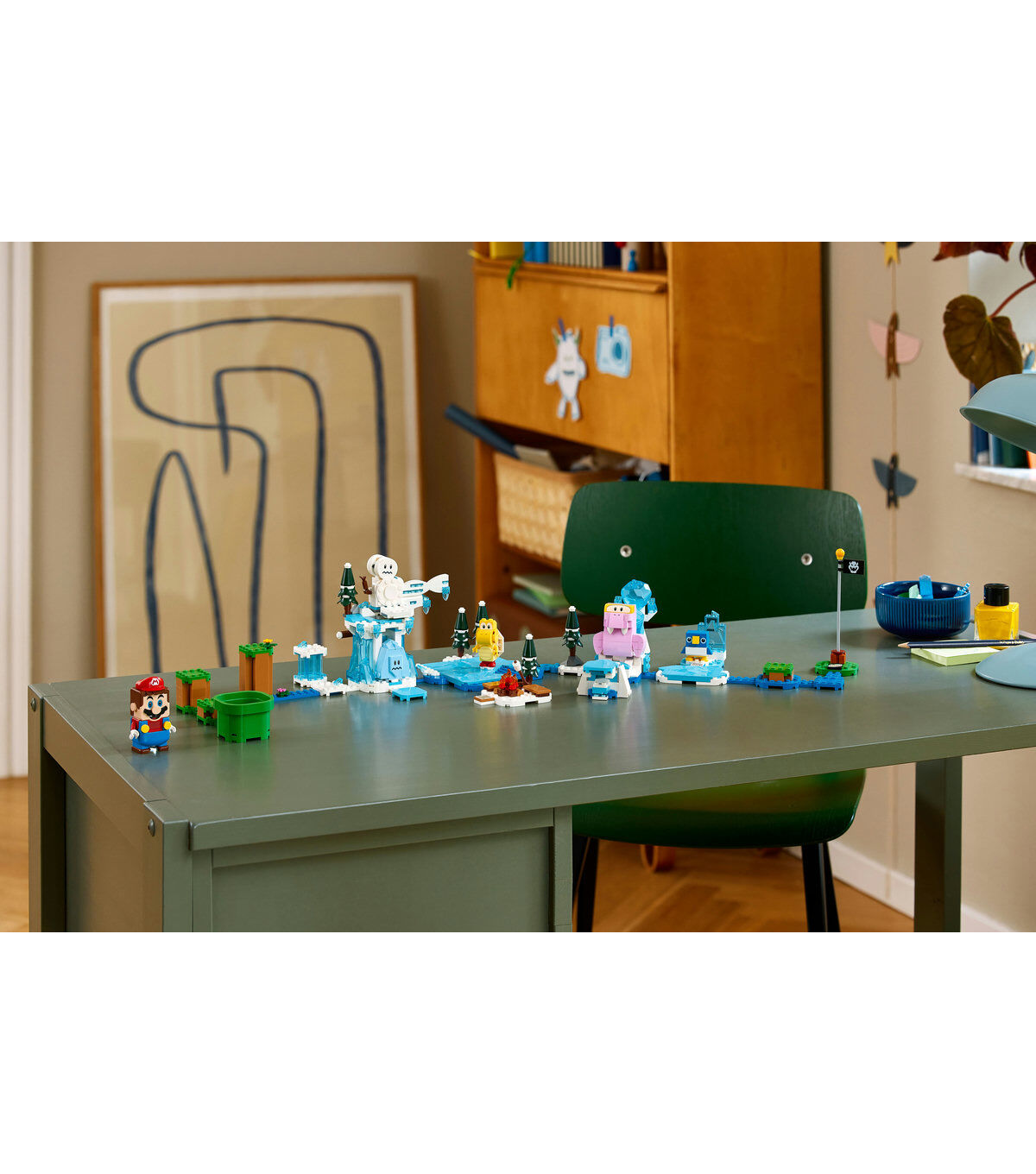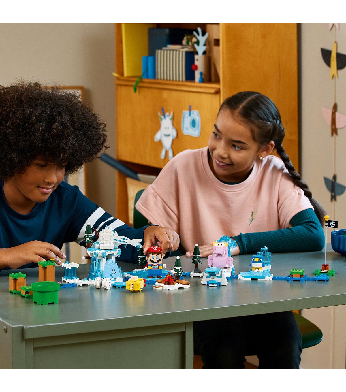 - Kids can create an icy adventure in their LEGO® Super Mario world with this Fliprus Snow Village Expansion Set, featuring 4 Super Mario characters.