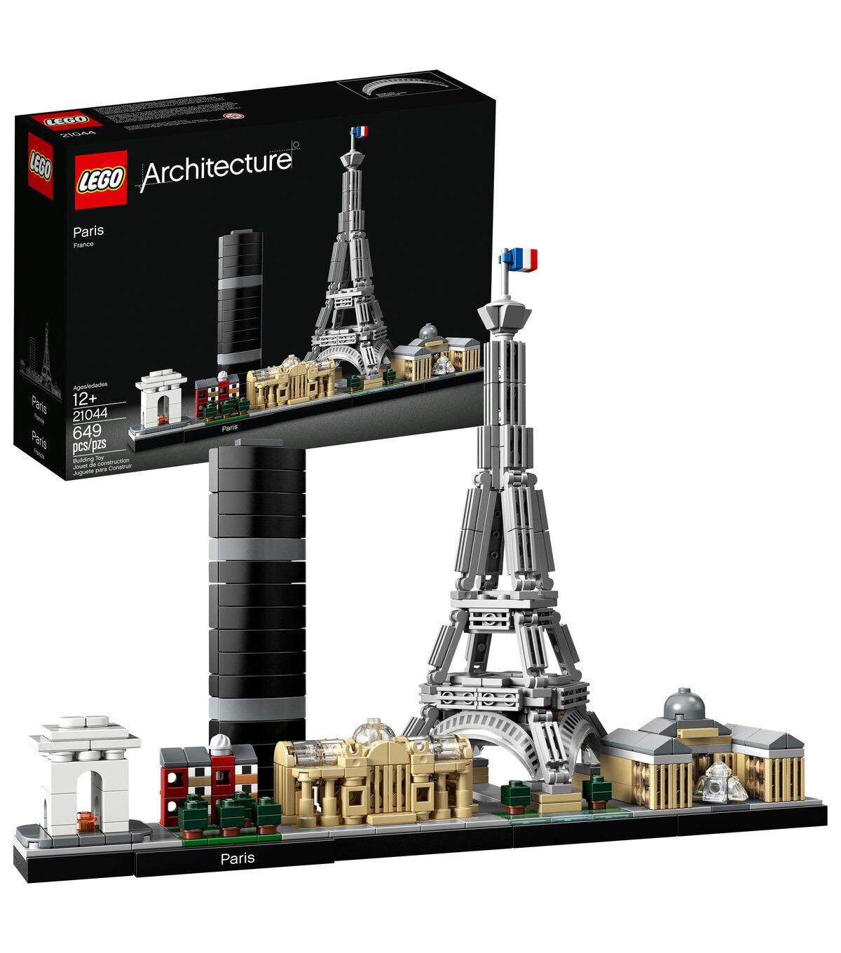 Capture the grandeur of Paris architecture with this magnificent LEGO® Architecture Paris Skyline set that brings together the iconic Arc de Triomphe, Champs-Elysées, Tour Montparnasse, Grand Palais, Eiffel Tower and Louvre in an inspirational skyline setting. Each individual LEGO model provides a unique and rewarding building experience with realistic color and relative scale depiction. Grass and tree areas and a decorative Paris nameplate add the finishing touch to this highly detailed recreation of the world’s most romantic city—a “magnifique” display piece for the home or office!