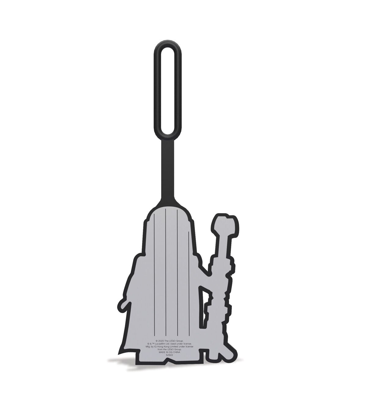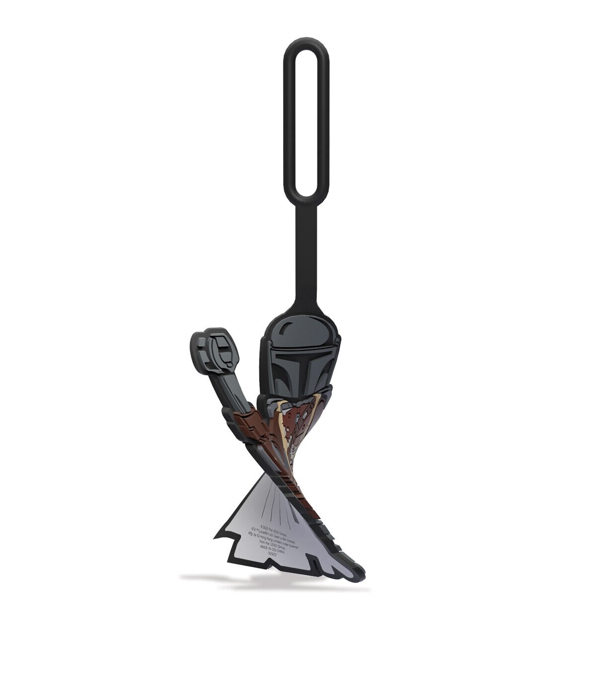 The LEGO Star Wars Manalorian bag tag made from 100% silicone is the perfect accessory to identify any luggage or backpack. The durable strap with loop securely attaches to any bag.