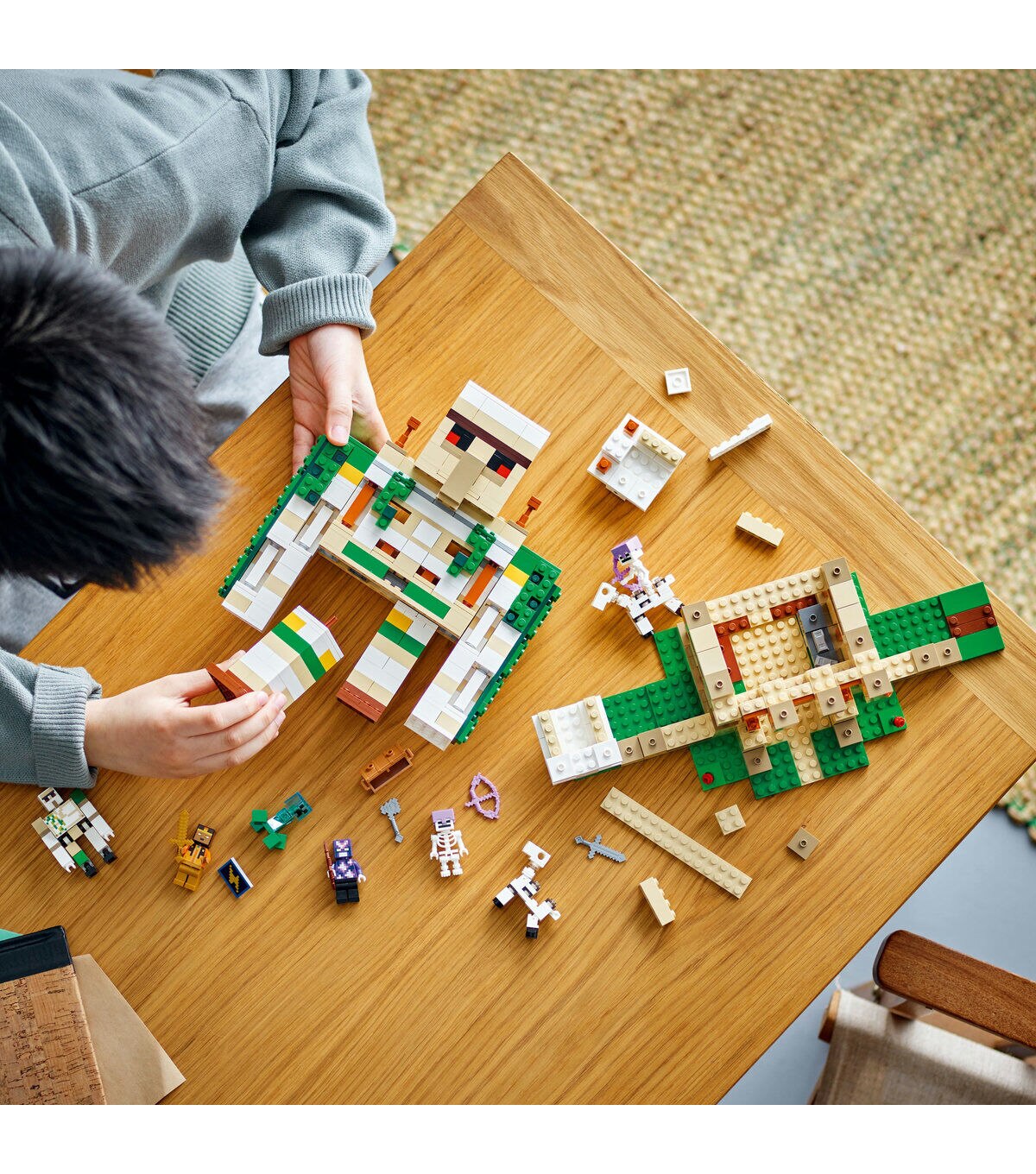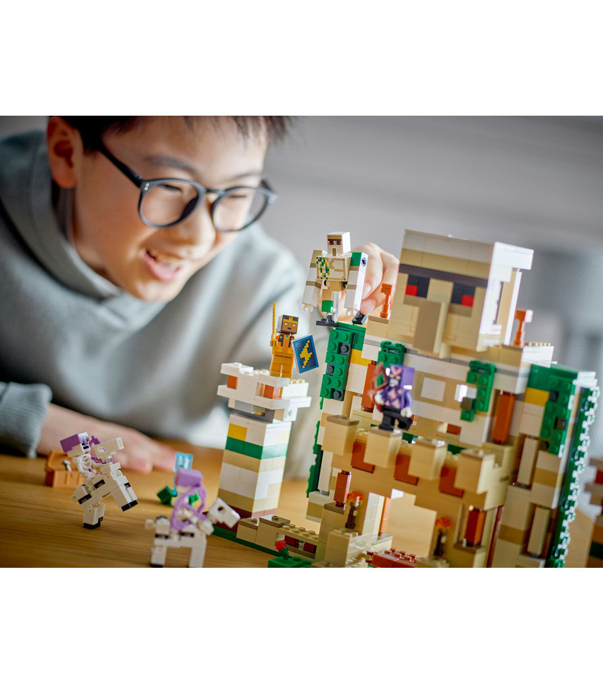 - Minecraft playset with lots of popular characters, featuring a golem fortress that transforms into a giant golem with large movable arms.