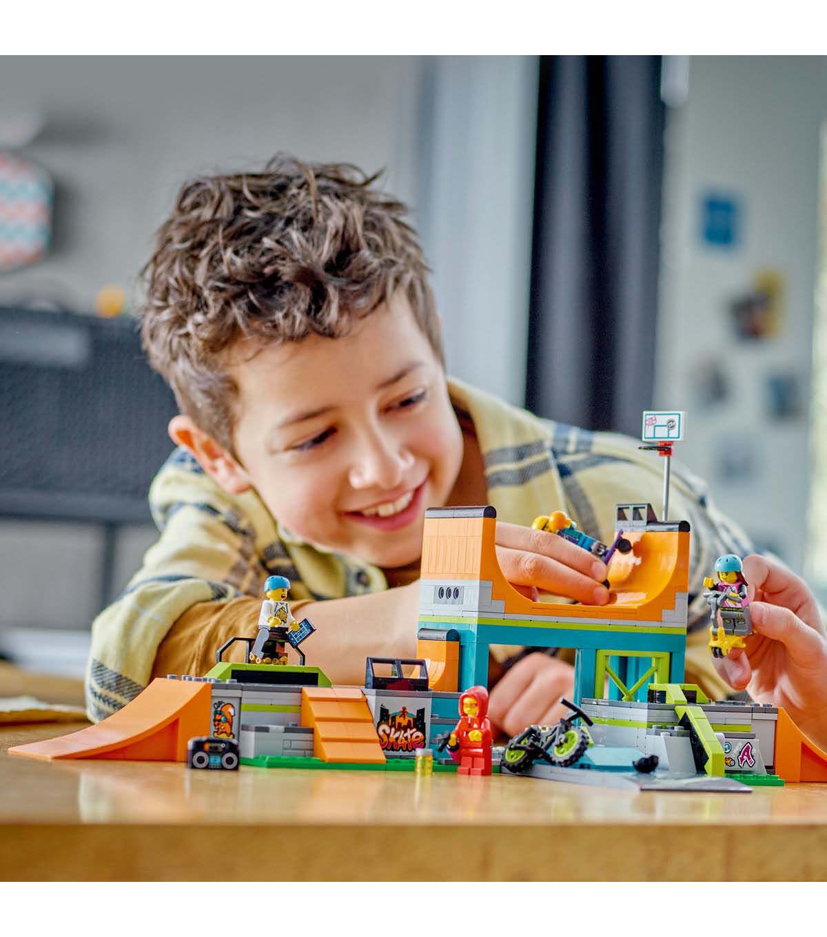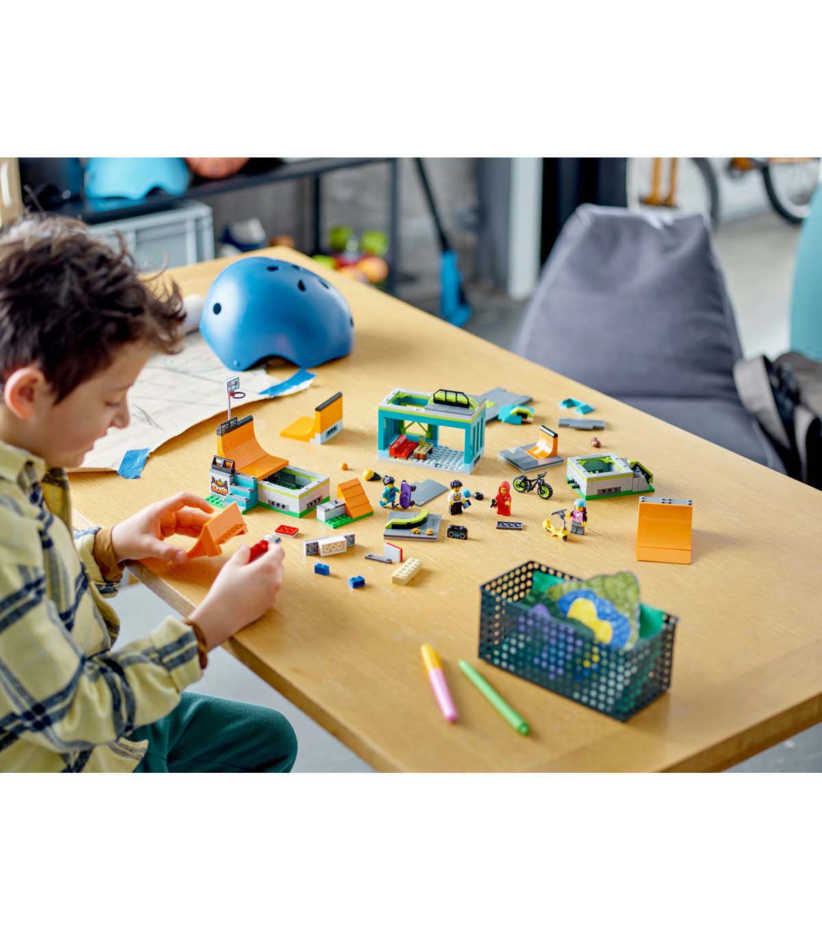 Kids and skate fans aged 6+ will love this LEGO City Street Skate Park set (60364). It’s packed with inspiration for imaginative play and comes with combinable ramp modules for different park configurations. The set also includes a toy BMX bike, skateboard, scooter, in-line skates, 4 skater minifigures and a LEGO Road Plate for connection to other sets from the LEGO City range. An immersive build-and-play experience The set includes an easy-to-follow printed building guide, and there are digital instructions in the LEGO Builder app. With this intuitive building companion, kids can zoom in and rotate and visualize models from all angles as they build. The app also enables them to track the building process and explore and save virtual playsets. Cool, creative toys for kids LEGO City playsets come with feature-rich buildings, realistic vehicles and fun characters that stimulate open-ended imaginative role play based on everyday heroes and real-life events.