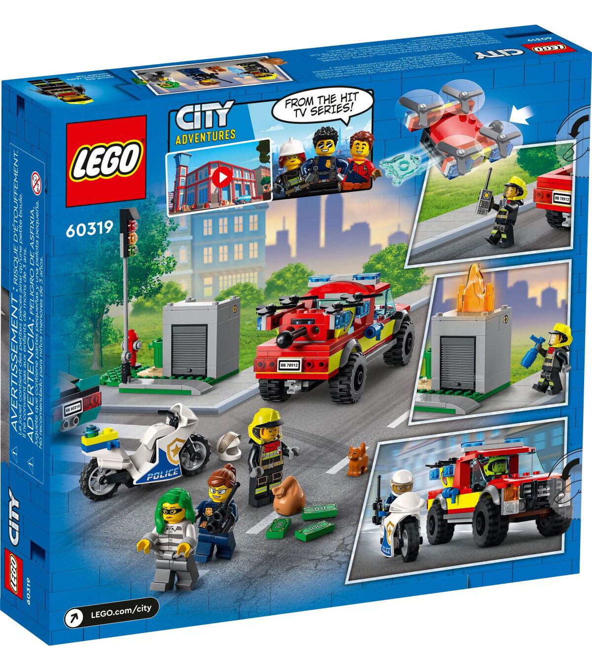 - Action toy for kids aged 5 and up – Open up a world of action-packed play with this LEGO City Fire Rescue & Police Chase (60319) playset, complete with a LEGO City Adventures TV series character