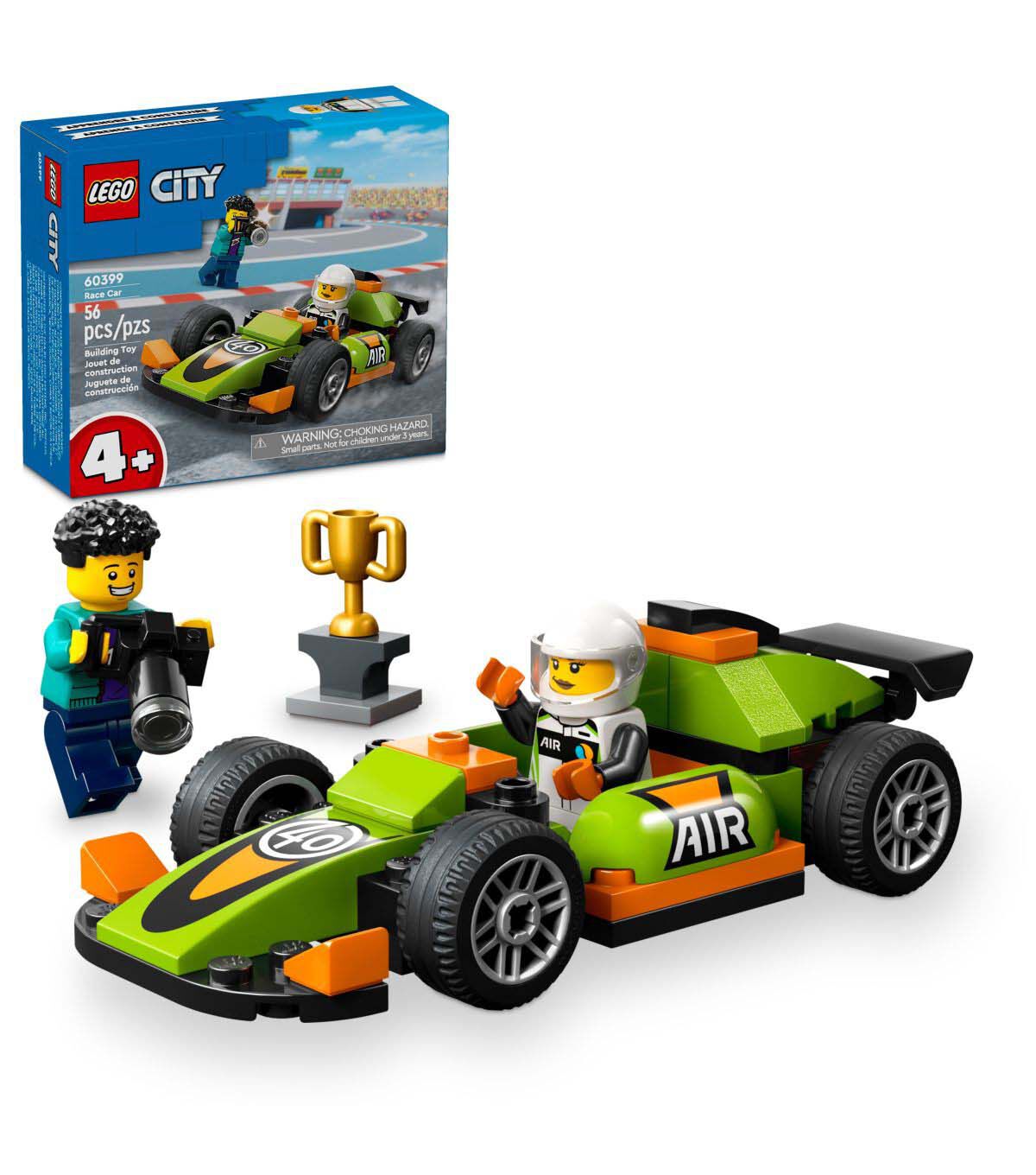 The LEGO City Green Race Car (60399) opens the door to a world of creative play for kids aged 4+. Prepare to cheer on your little racer and embrace the magic of playtime together with this LEGO racing car toy, featuring sporty tires and a cool rear spoiler. This set also includes photographer and racing driver minifigures, plus a winner’s trophy for imaginative storytelling. This easy-build toy car playset makes a cool gift for kids aged 4+. It comes with a LEGO Starter Brick element, a pictorial guide and 3D instructions in the LEGO Builder app – a digital building companion with intuitive tools that enable kids to zoom in and rotate and visualize models from all angles as they build. LEGO City playsets put kids at the heart of the action with realistic vehicles, detailed structures and inspiring characters for imaginative play without limits. Combine this vehicle toy with other sets (sold separately) from the LEGO City range for an open-ended world of play possibilities.