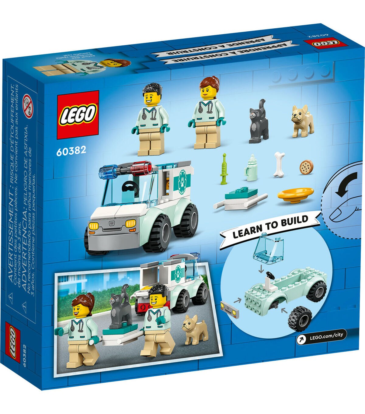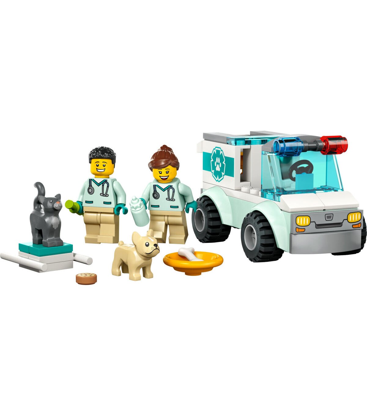 - What’s in the box? – Everything kids need to create a toy animal-rescue vehicle, plus 2 vet minifigures, dog and cat figures and fun accessories