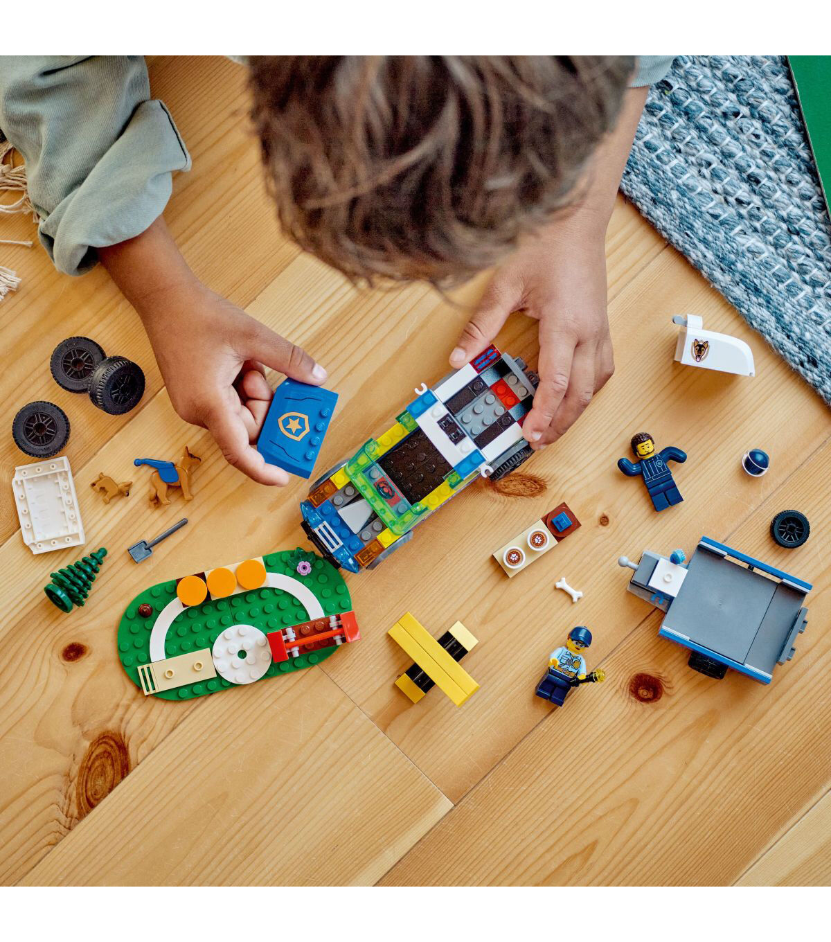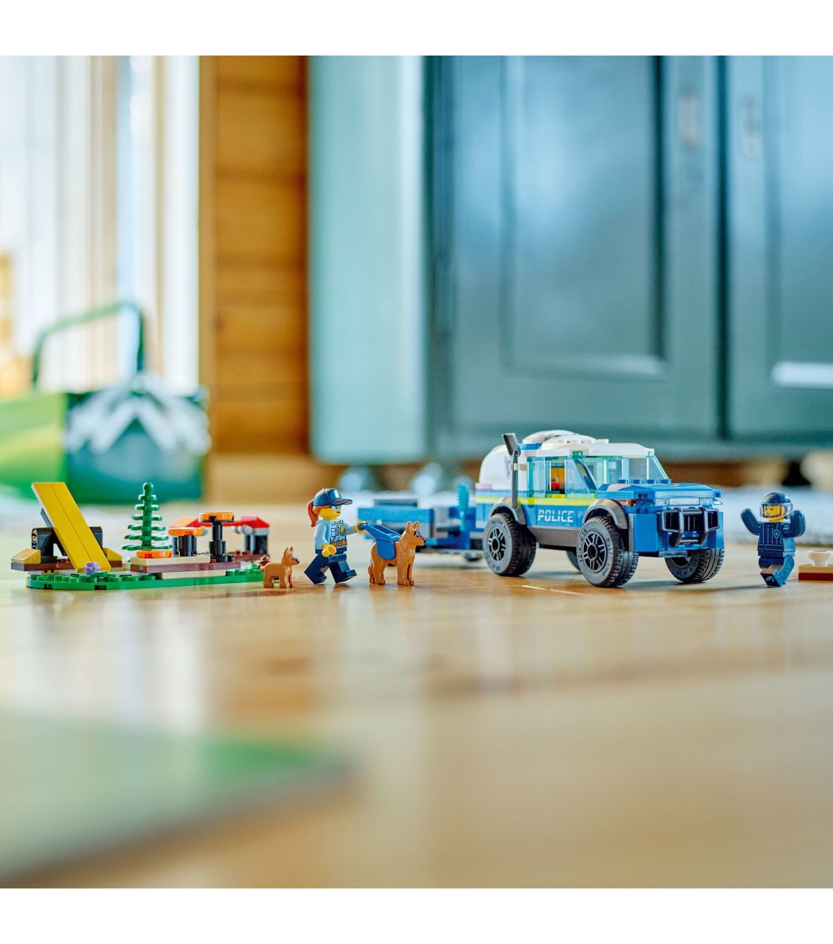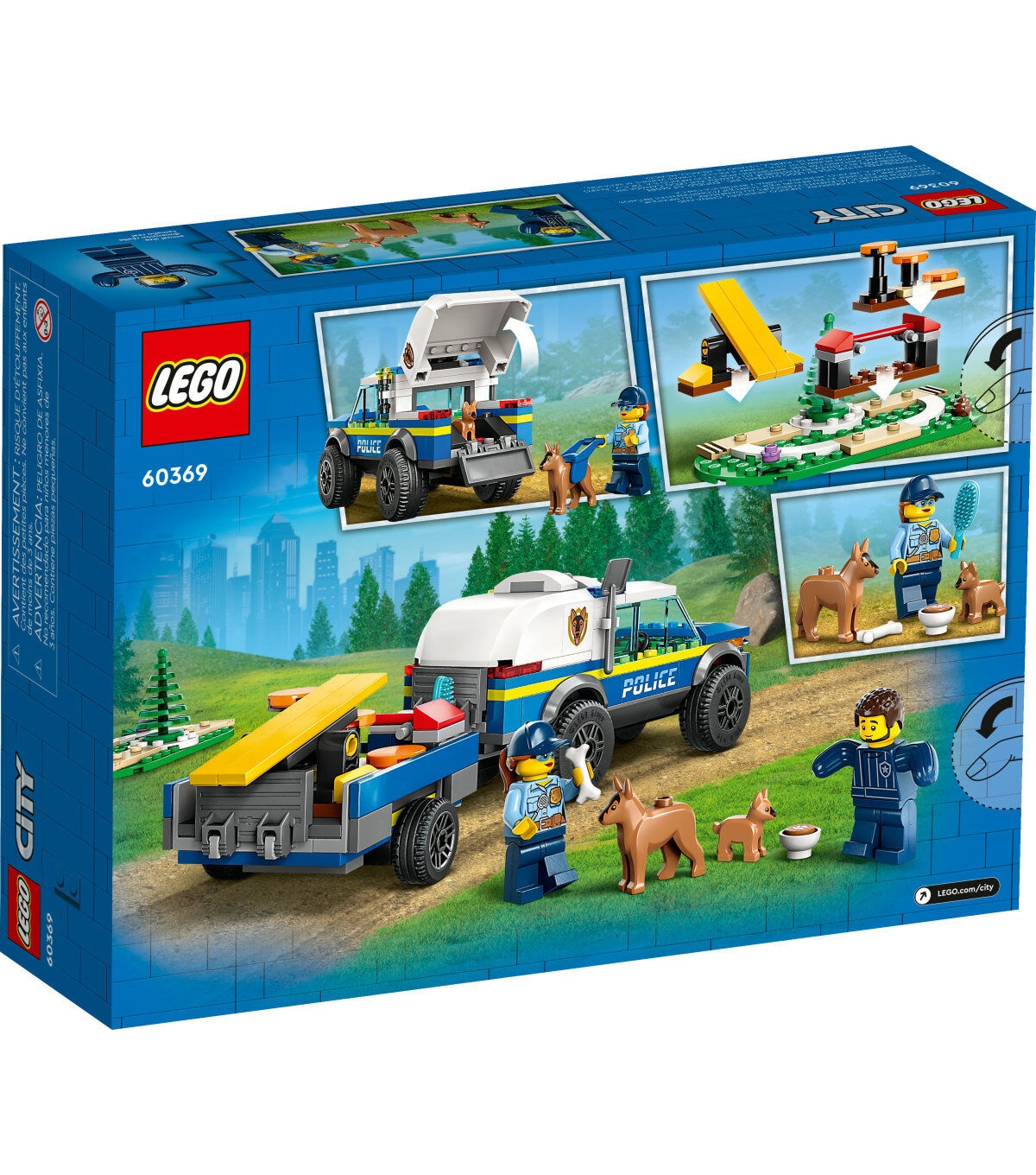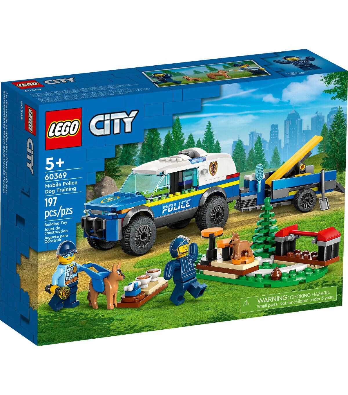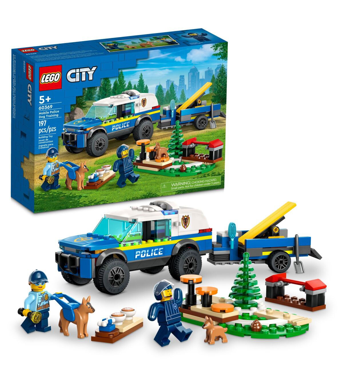 - What’s in the box? – Everything kids need to build a toy police K9 SUV, trailer, 3 dog-training apparatus and a training ground setting, plus 2 minifigures, a dog figure and a puppy figure