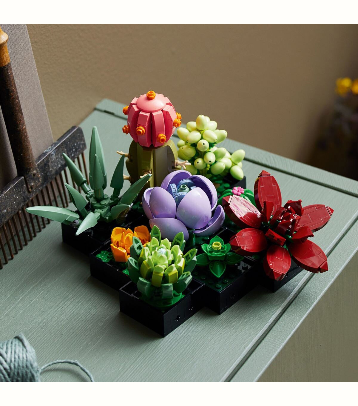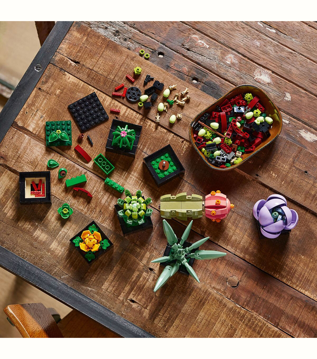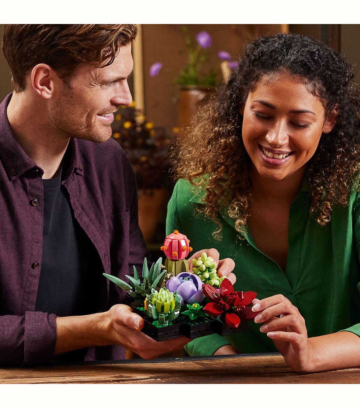 Succulents are a popular way to introduce plants into the home and enhance your decor. Now you can enjoy a mindful building project as you create an elegant plant display for your living space with this LEGO Succulents (10309) building kit for adults. Take your time crafting all the details of the 9 different succulents – each inspired by a real-life variety. Then show off your creativity with the ultimate low-maintenance plant display. Personalize your display Each succulent comes in its own small container. Combine them to create 1 arrangement, display in small groups or show them off individually throughout your home, office or dorm room. This set also makes a great gift idea for plant lovers, and with 3 separate instruction booklets it’s the perfect project to enjoy with friends and family. Building creativity, piece by piece Discover the space to be mindful and the time to relax with buildable models designed specifically for adults from the LEGO Botanical Collection.