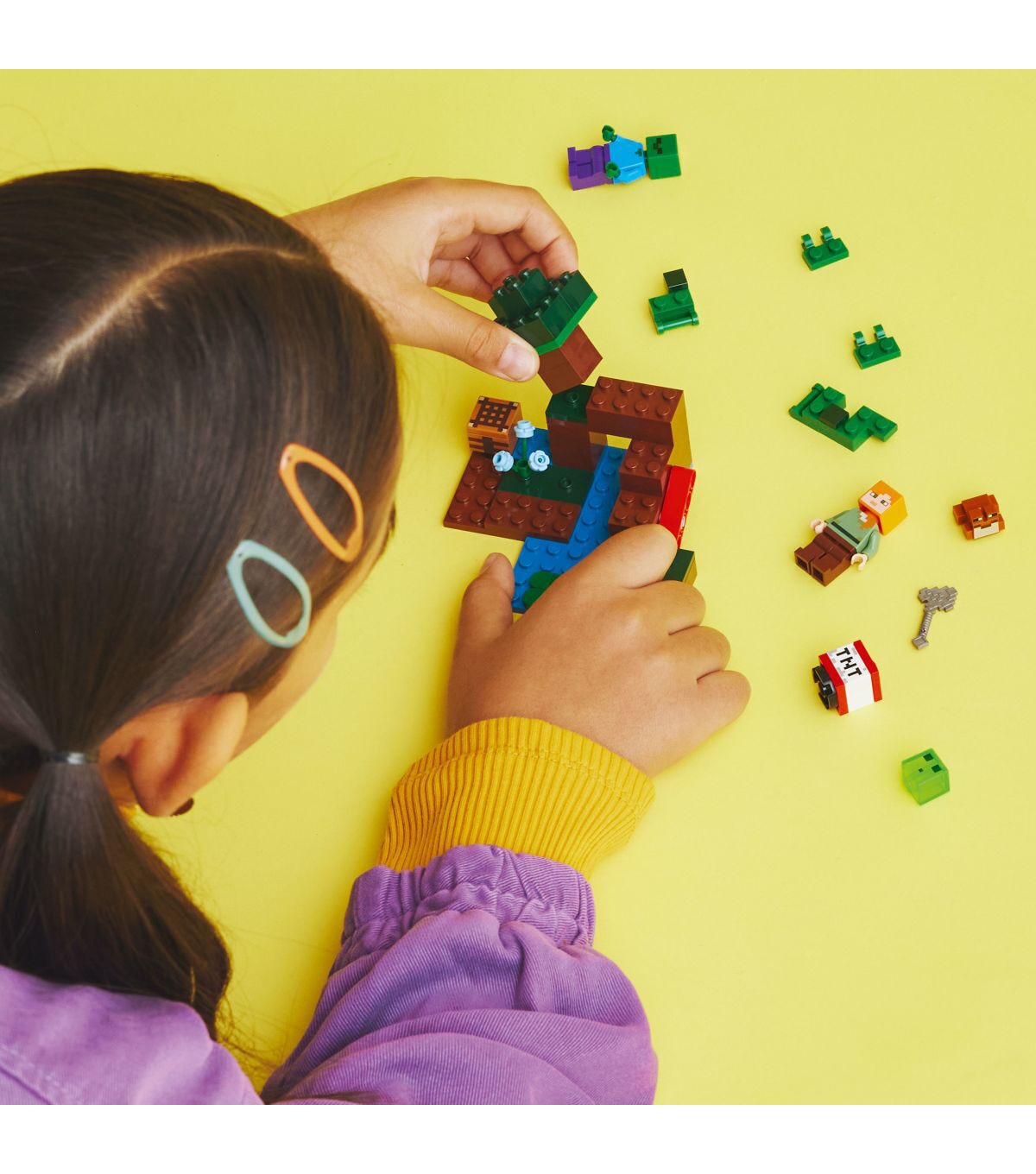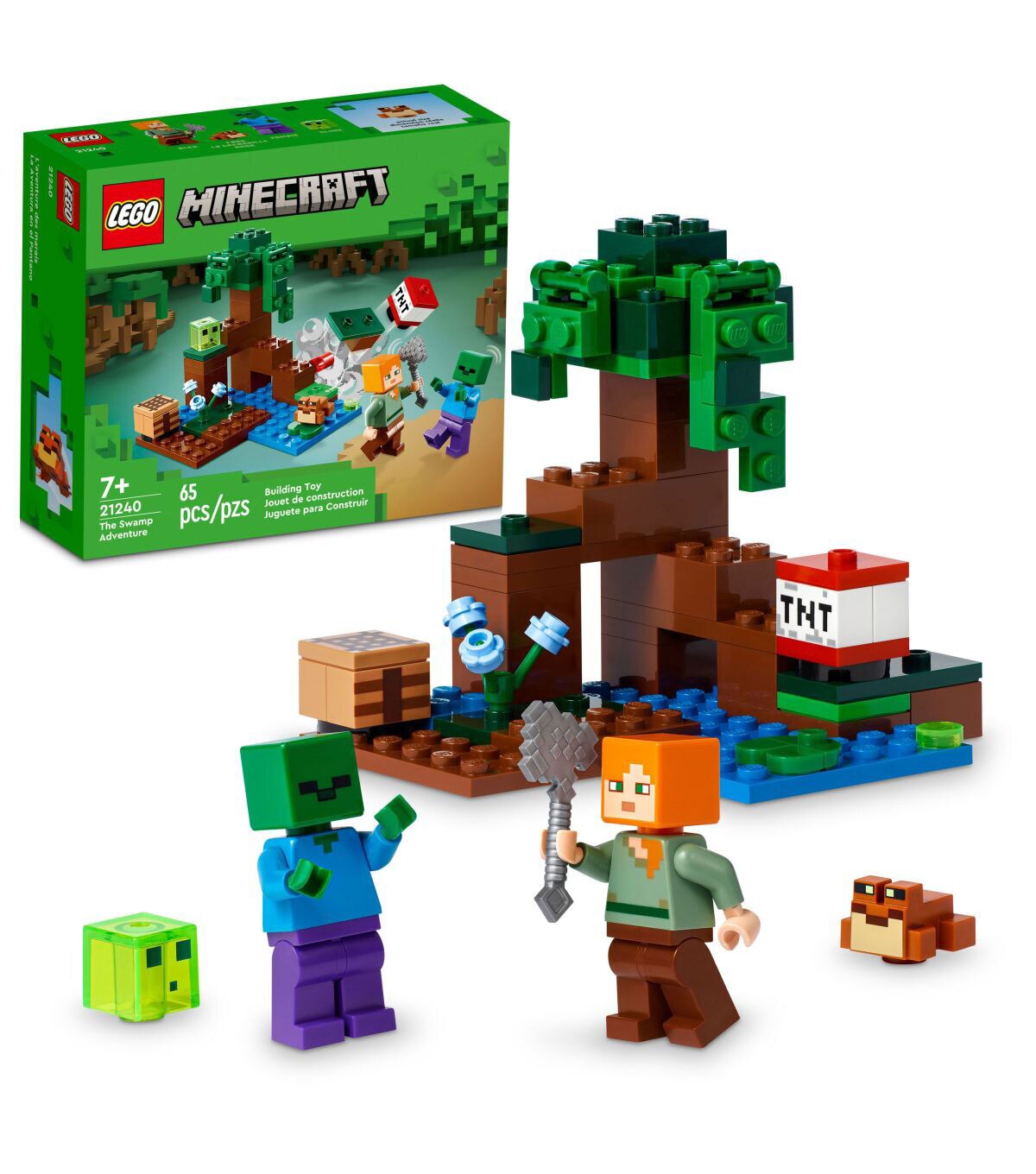 Treat Minecraft players aged 7 and up to a swamp full of hands-on, action-packed, creative play with LEGO Minecraft The Swamp Adventure (21240). Fun-filled Minecraft toy to build and explore Put the creative thrills of Minecraft into kids’ hands with this physical version of the perilous swamp biome. This versatile toy features familiar Minecraft favorite Alex as she journeys through mud and mangroves on a Minecraft adventure. As well as opportunities for creative construction, there are 2hostile mobs to battle – a zombie and a slime – and a friendly frog who observes the action from a lily pad. Kids help Alex use her axe and operate a lever to detonate a TNT explosion to fend off any attack. For added digital fun, the LEGO Builder app features intuitive zoom and rotate tools that let kids visualize their model as they build.