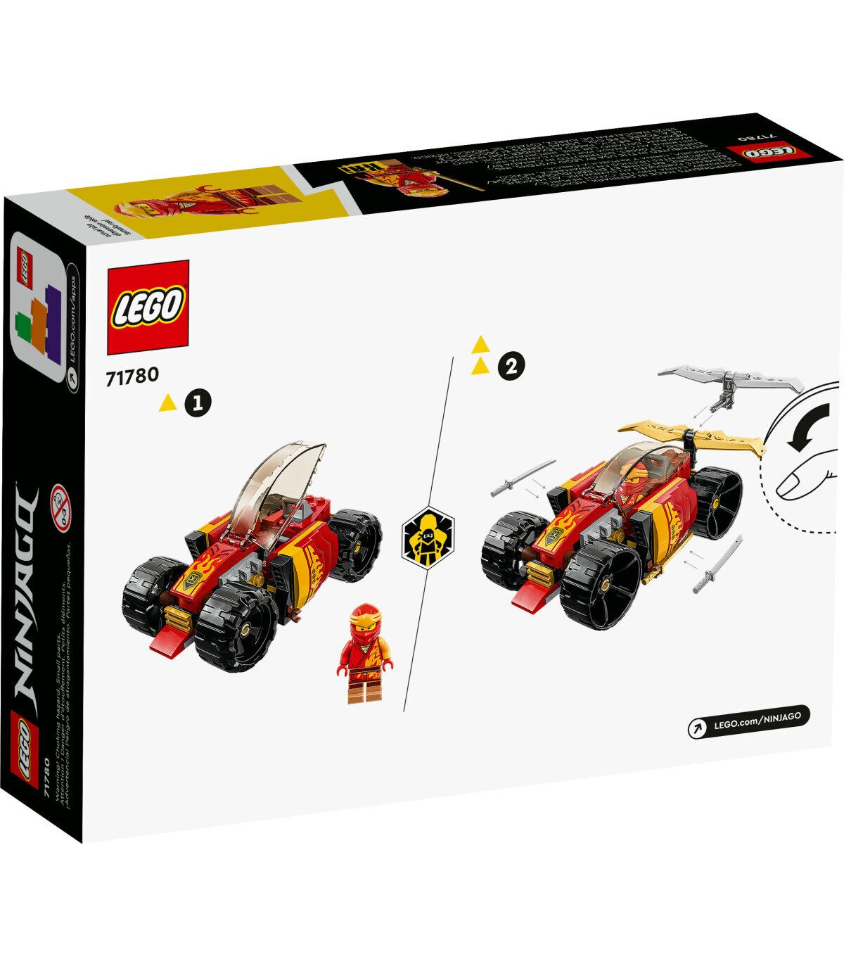 - LEGO NINJAGO car – Kids can stage exciting race action with Kai’s Ninja Race Car EVO (71780) playset