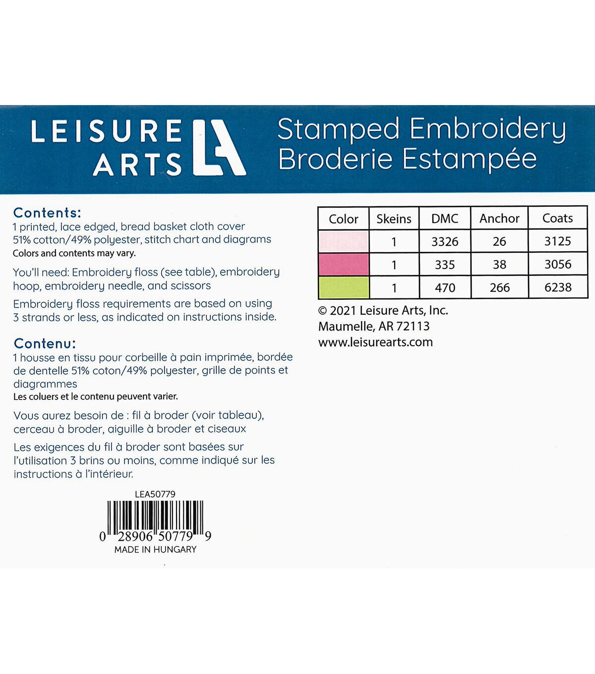 Leisure Arts Kits contain everything you need to create your project unless otherwise stated. Leisure Arts Bread & Basket Cloth 15.7x15.7" Pink Floral- Stamped cross stitch design features a pink flower surrounded by tiny pink blossoms with light green leaves in each corner of the cloth. Kit includes stamped white, high-quaity percale woven fabric, sistch chart, diagrams, and recommended floss colors. Makes 1 design. Colors and contents may vary.