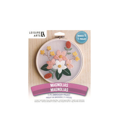 Leisure Arts Kits contain everything you need to create your project unless otherwise stated. Embroidery 6" Magnolias- Customize your home décor with this hoop art kit.