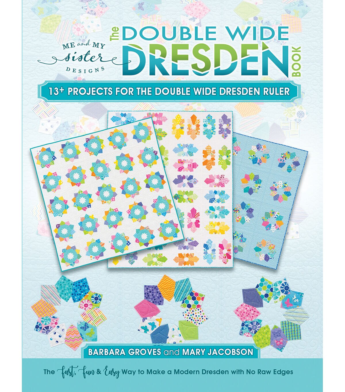 What is a Double Wide Dresden? It's a fast, fun way to make classic Dresden blocks! These 36-degree Dresdens require only 10 wedges (instead of the traditional 20). Cut sewing time in half and create all the beauty with none of the fuss. There are no hand-appliqued centers--instead, stars appear with no raw edges! You can even cut wedges from strip sets. Make projects even easier with the companion Double Wide Dresden Ruler (not included).This book is published by Me and My Sister Designs LLC, is distributed by Martingale, and is nonreturnable.
