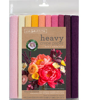 The Lia Griffith Heavy Crepe Papers-English Garden are perfect to make DIY flowers, holiday decorations, wedding and party decorations, kids craft projects and more. This package contains 10 rolls of 9.8 x 39.3-inch non-toxic heavy crepe paper in assorted colors.