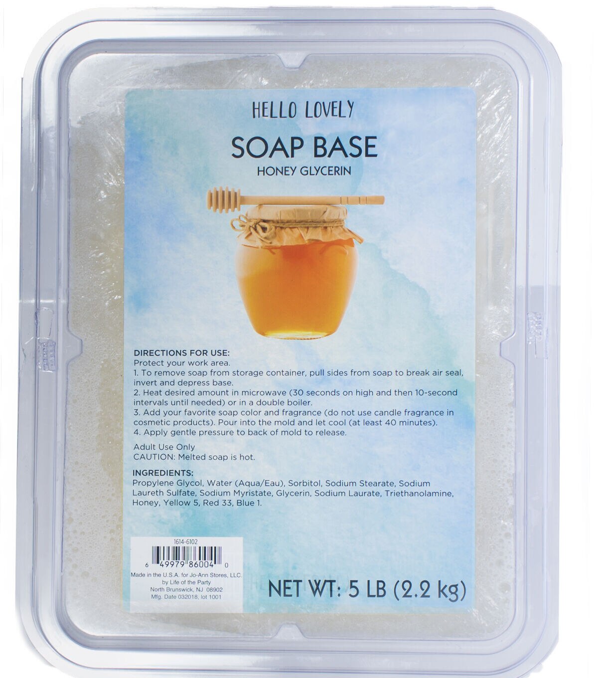 The Life of the Party Hello Lovely Honey Glycerin Beauty Soap Brick is a vegetable-based glycerin soap brick, which is high in humectant moisturizers. It comes in a storage container, so that the soap stays fresh between uses. This soap cleanses without drying the skin. Exclusively formulated in the USA, this soap is enriched with honey.
