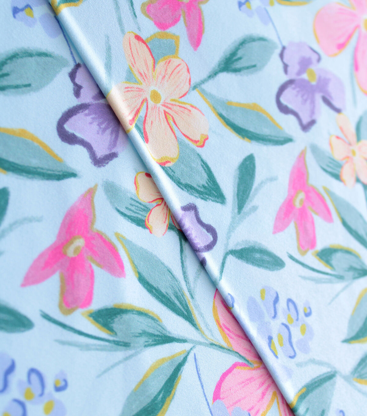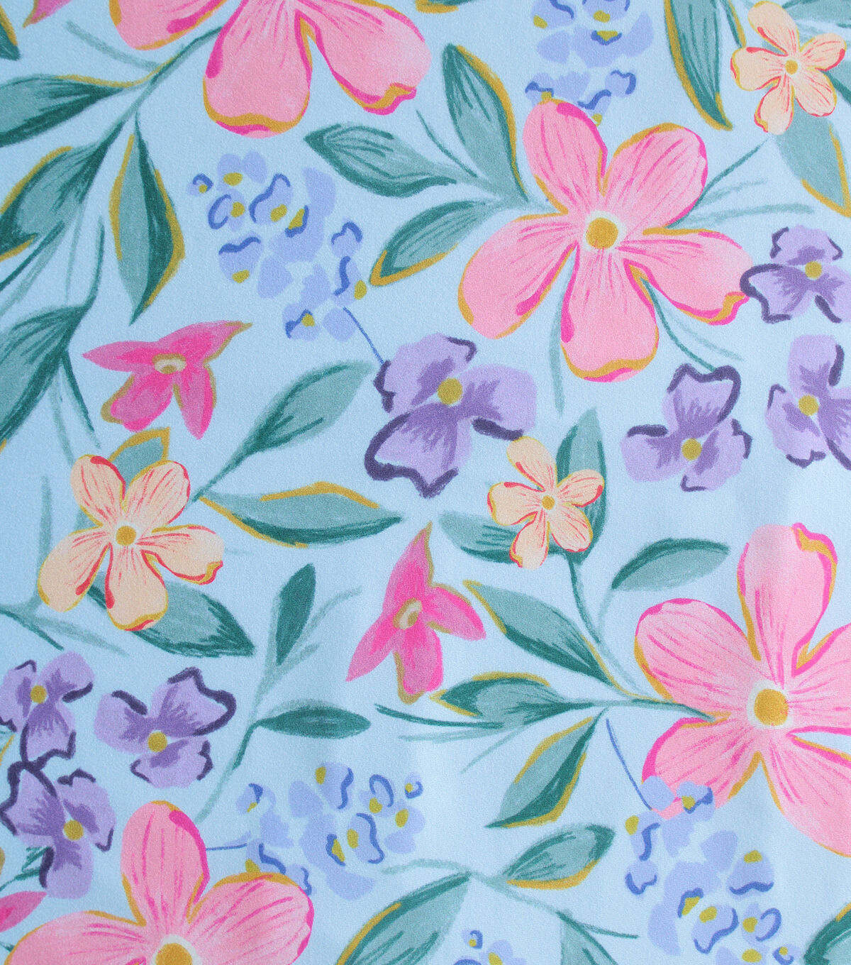• Light Blue Multi Petals Double Brush Jersey Knit Fabric